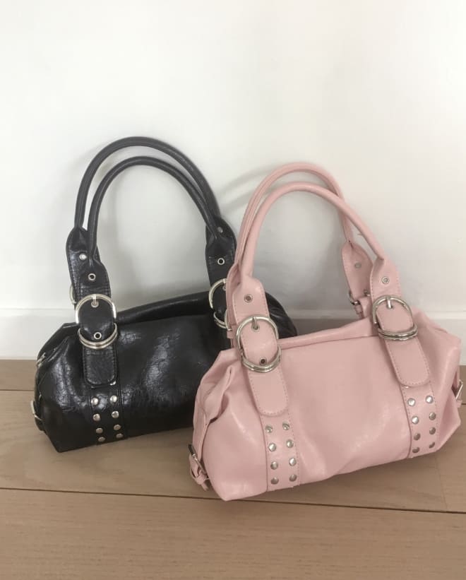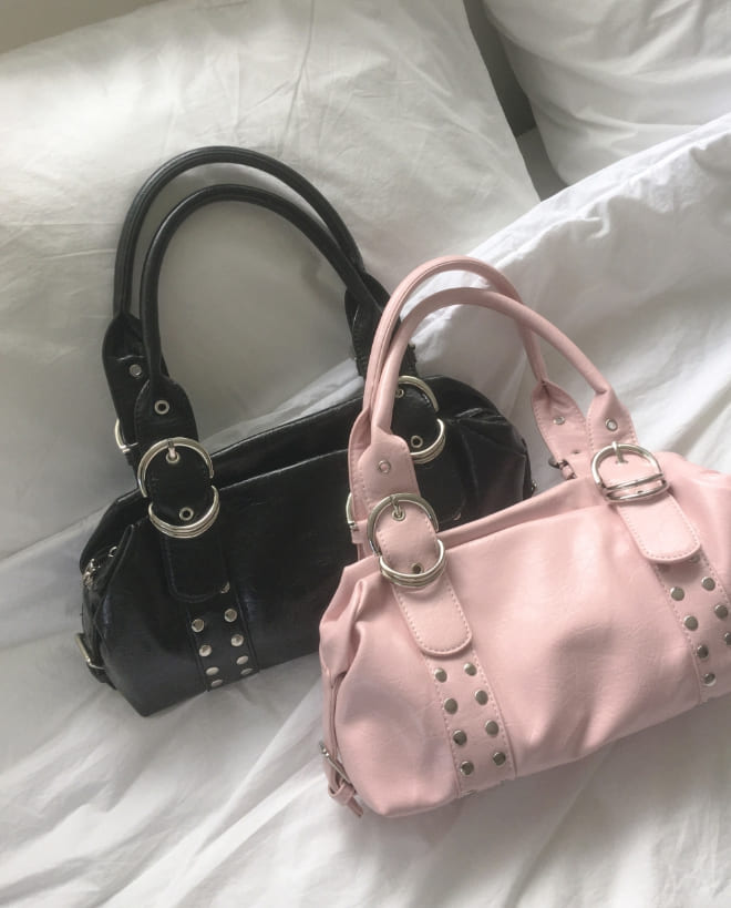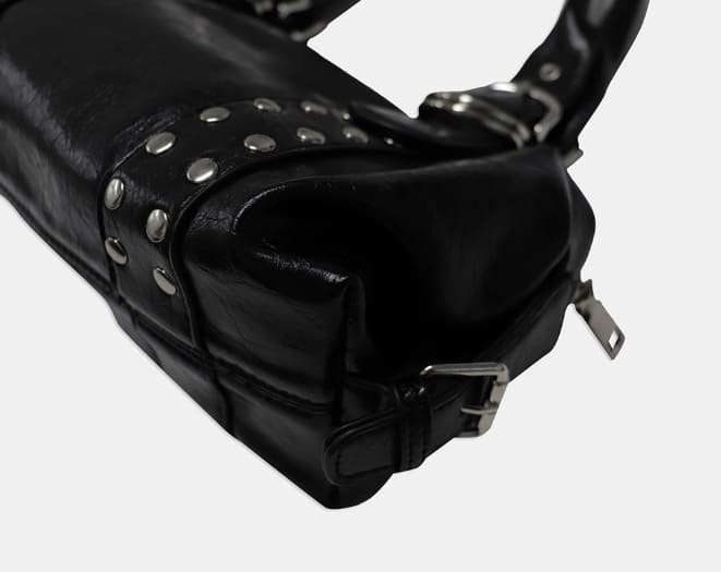 Clun Stud Eyelet Buckle Leather Shoulder Bag