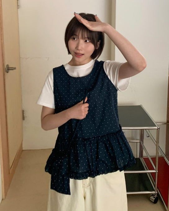 コシンスドットリバーシブルノースリーブビスチェバッグセット