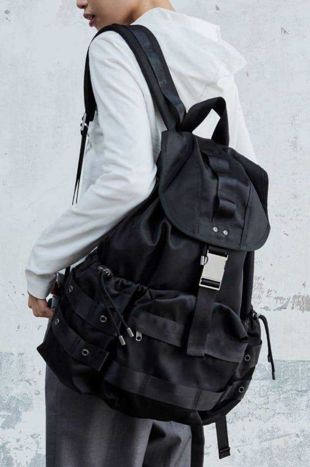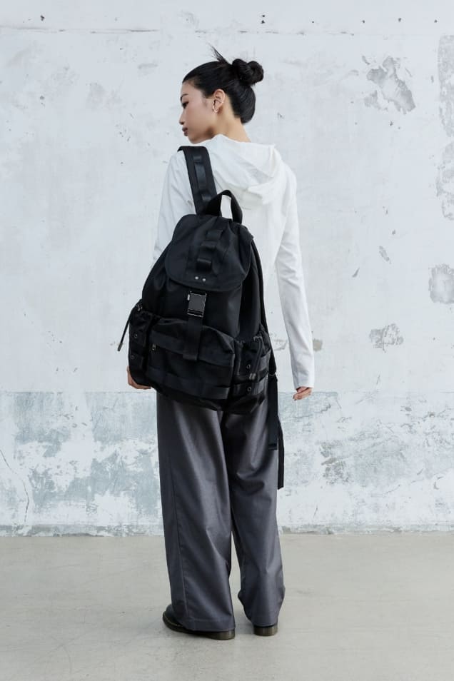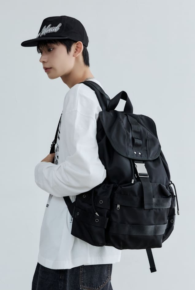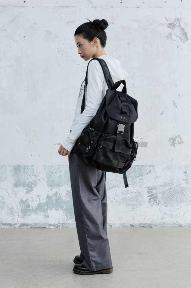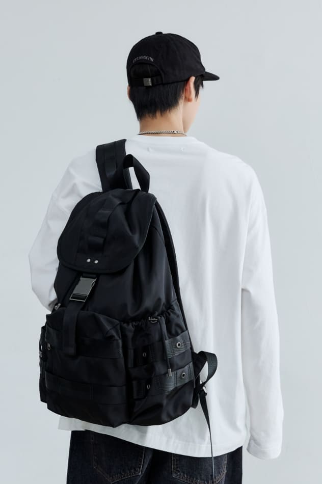 EYELET THREE-POCKET BUCKLE BACKPACK