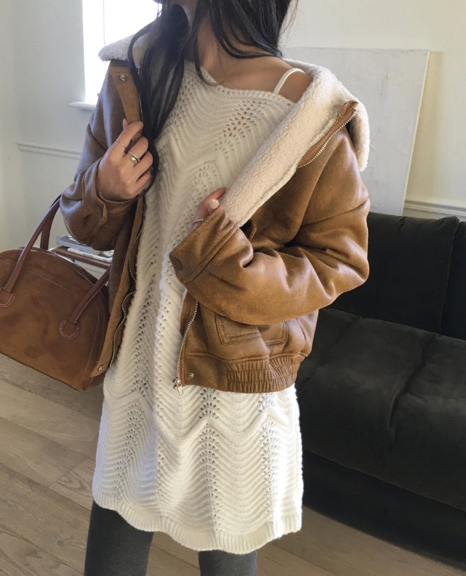 Hittite Suede Stitch Round Tote Shoulder Bag