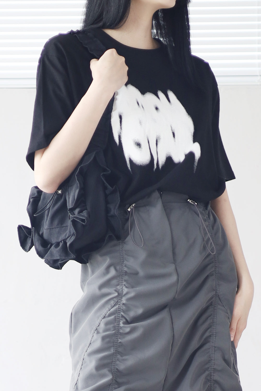 リアキャンバスフリルショルダーバッグ