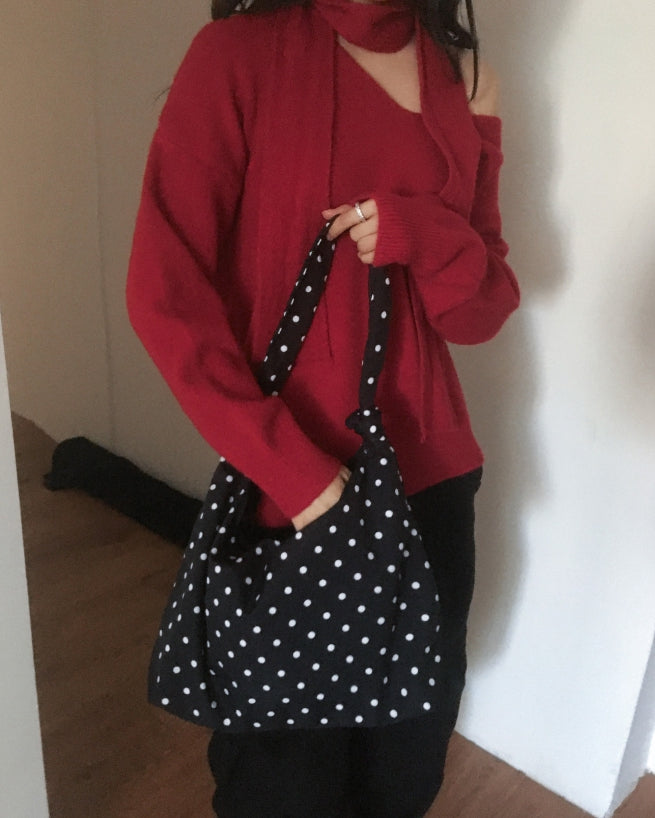 ポモドット水玉コットンエコバッグショルダーバッグ