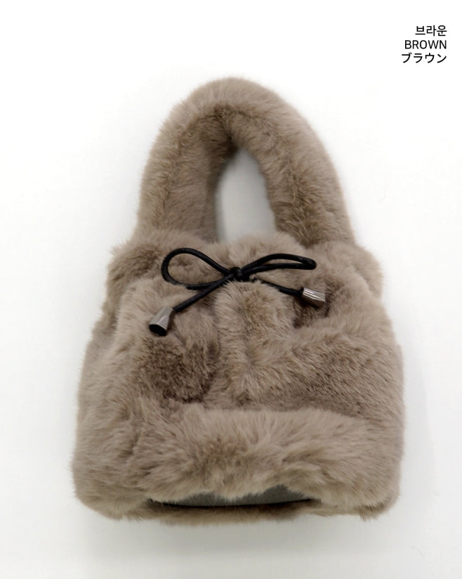Rotu Fur Ribbon String Tote Cross Shoulder Bag