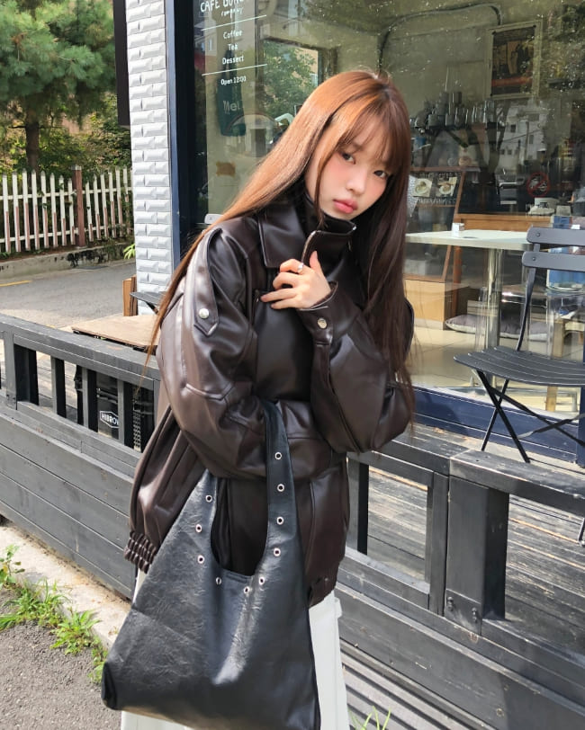シートアイレットレザーショルダーバッグ