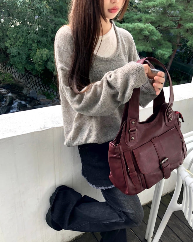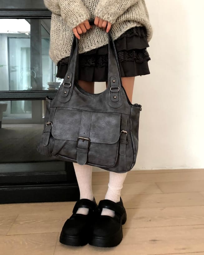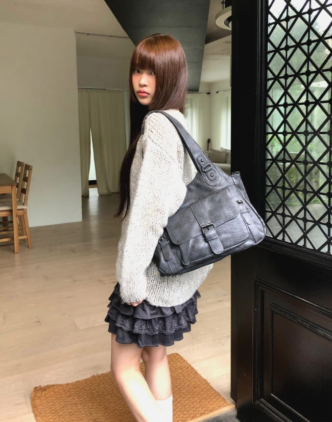 Shishu Pocket Buckle Leather Shoulder Crossbody Bag