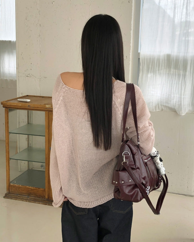 Tommy Stud Eyelet Zipper Leather Shoulder Bag