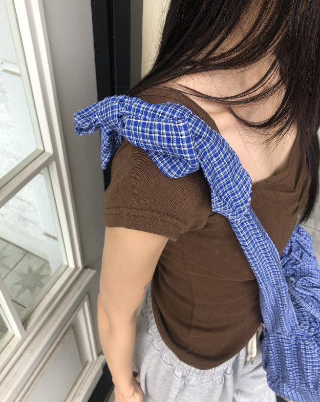 Toring Check Shirring Ribbon Shoulder Crossbody