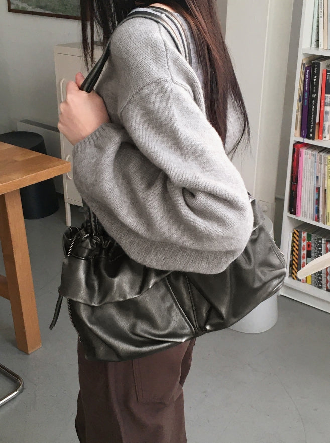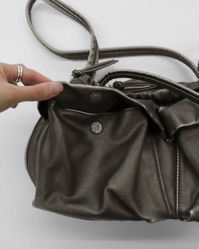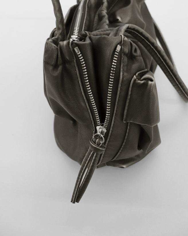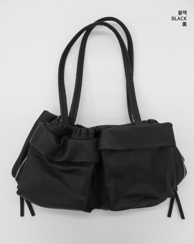 ウィルツレザーウォッシュ加工ポケットサイドジッパーショルダーバッグ