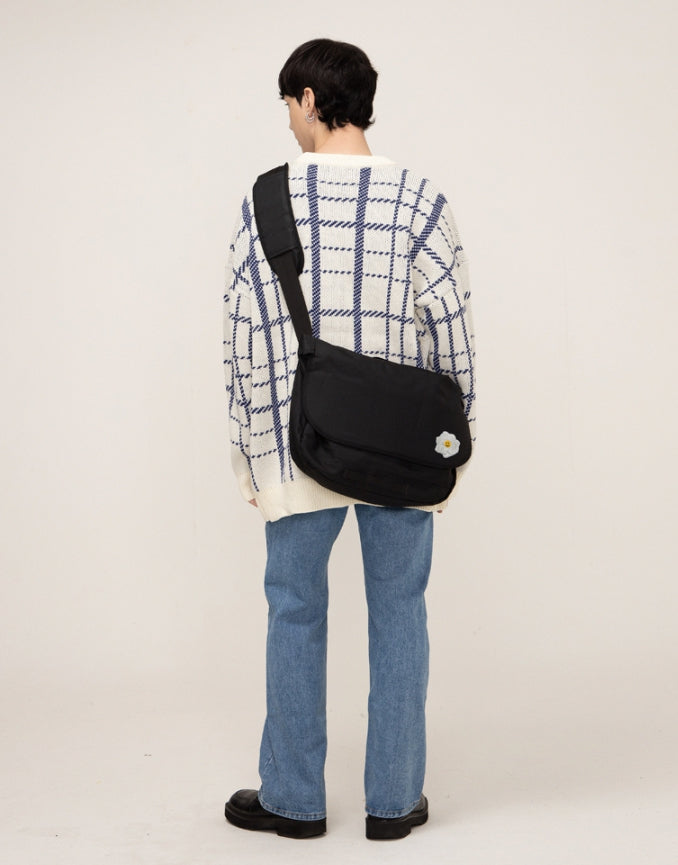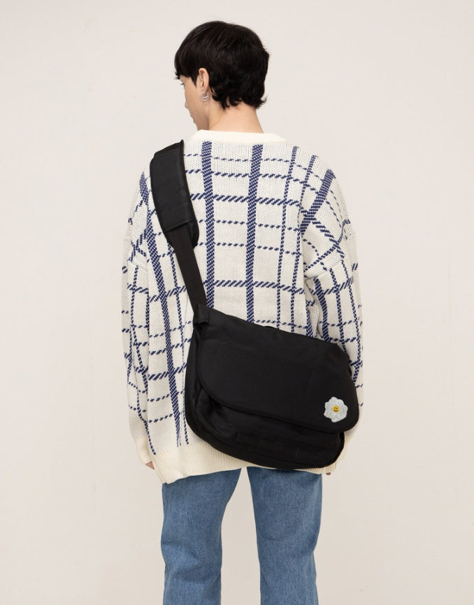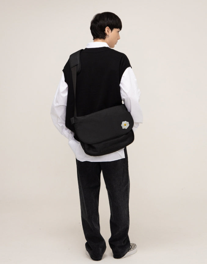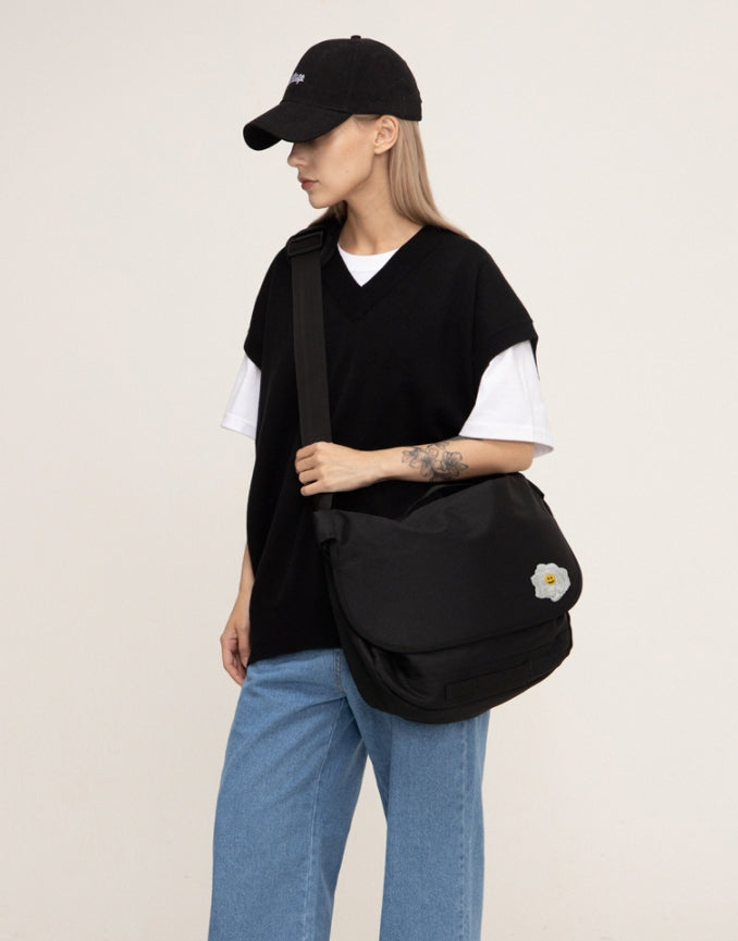 White Rose Smile Embroidered Cross Messenger Bag