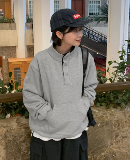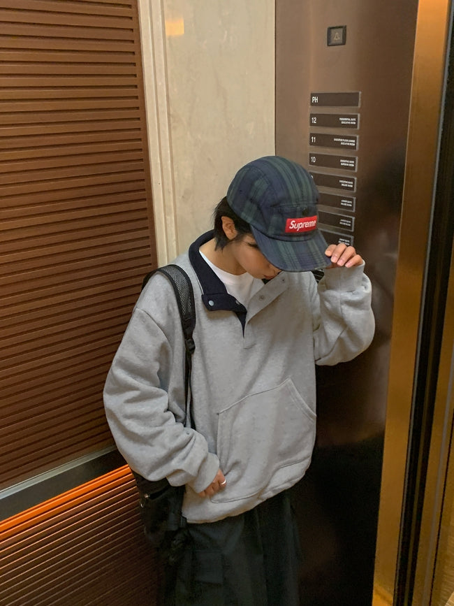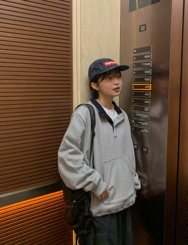 [BAONHAUS] Billtory Button Color Matching Two-tone Sweatshirt