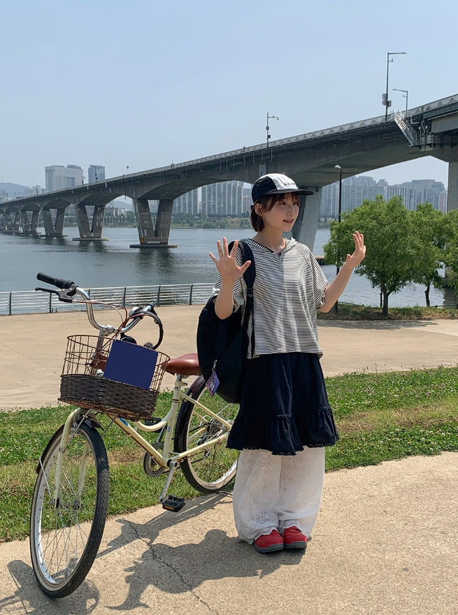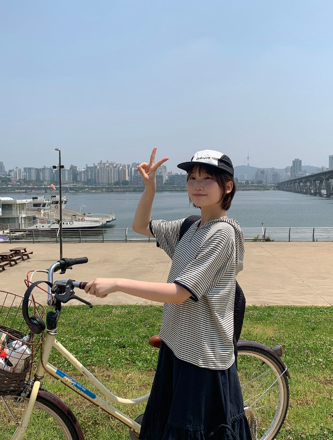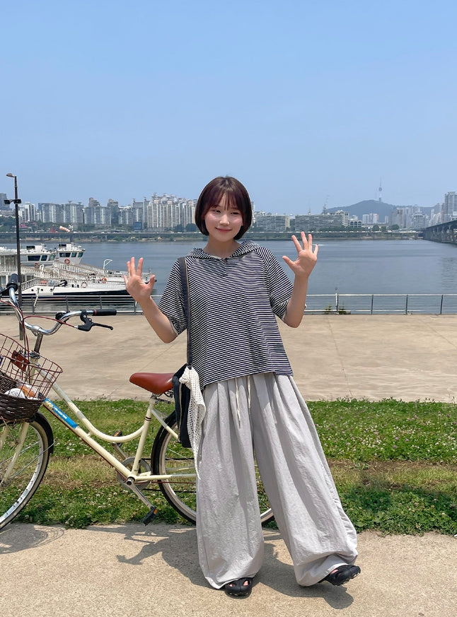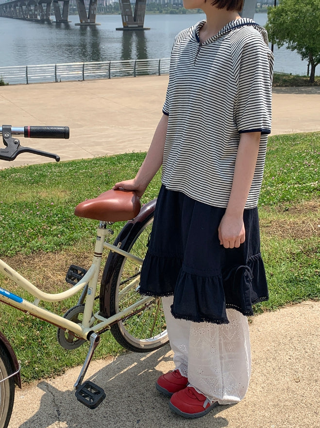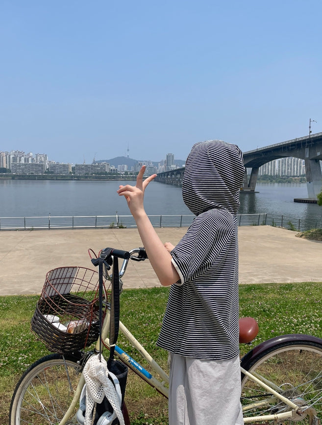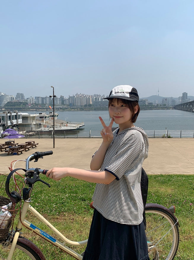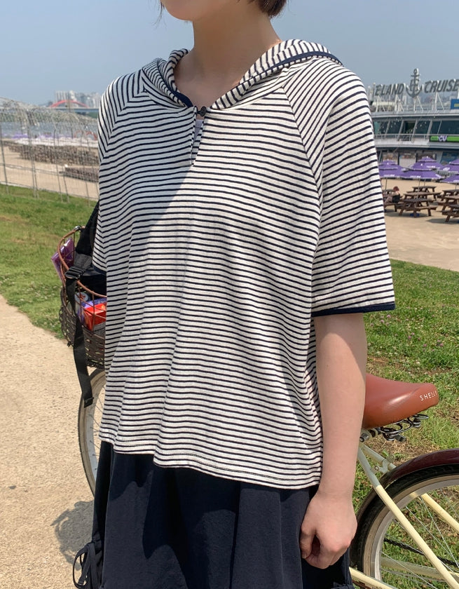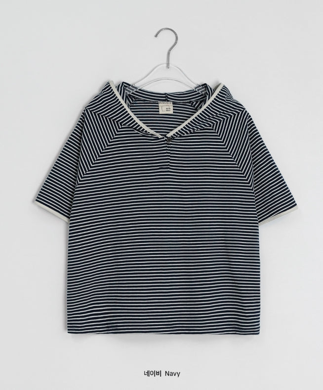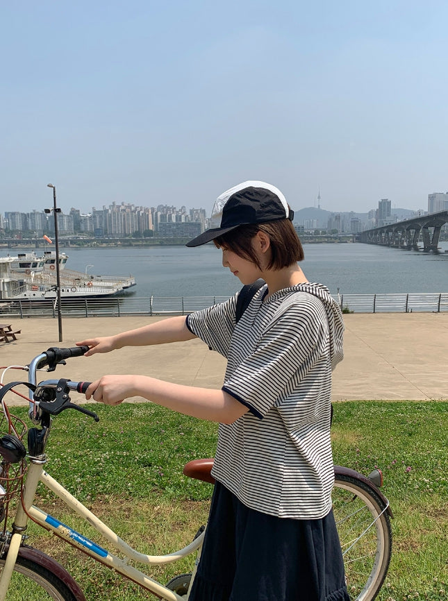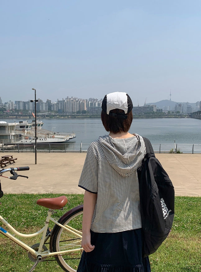 [BAONHAUS] Kolbakeu Stripe Color Matching Hood Short Sleeve Tee