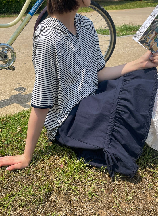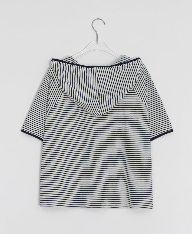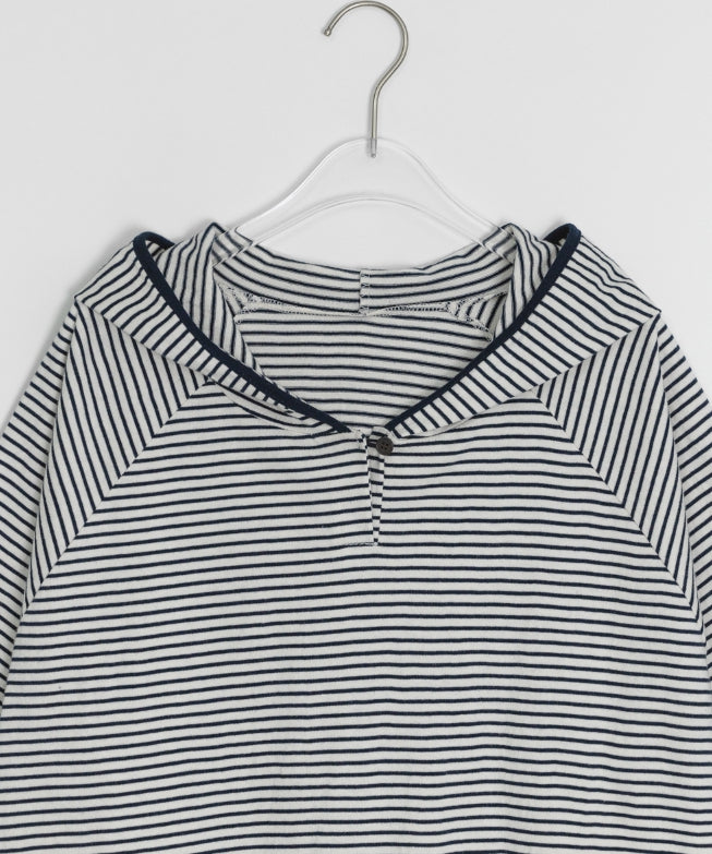 [BAONHAUS]コルバケウストライプカラーフード半袖Tシャツ