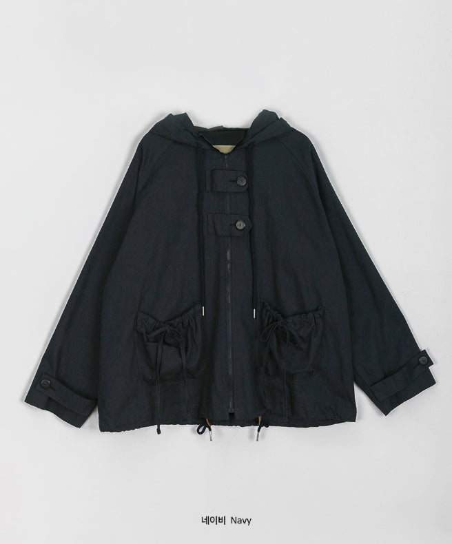 [BAONHAUS] Kuninged ribbon pocket cotton hood jacket