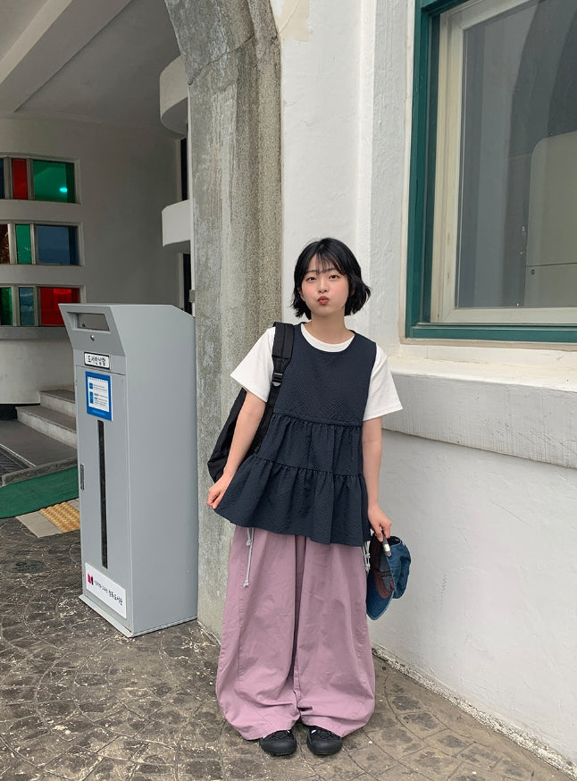 [BAONHAUS] Mesit Shirring Layered Sleeveless Blouse