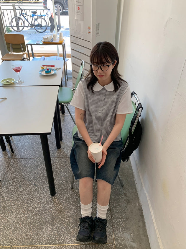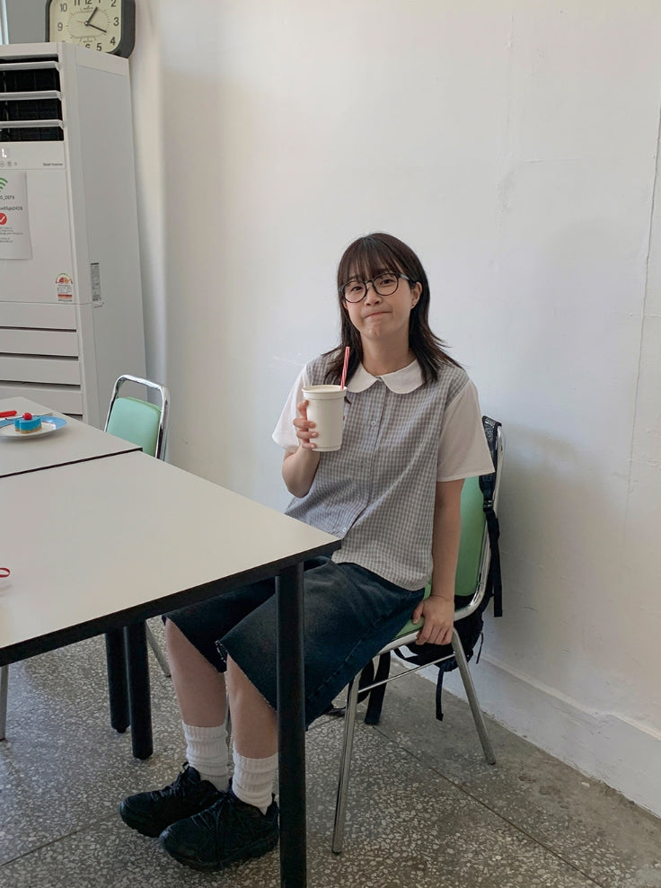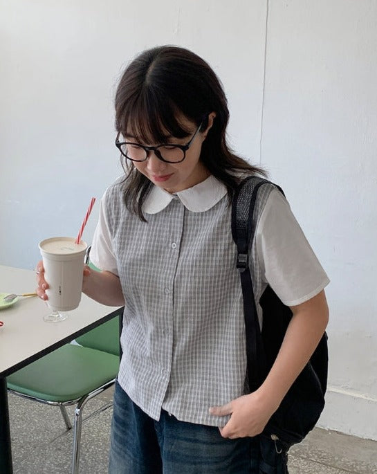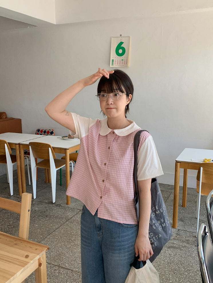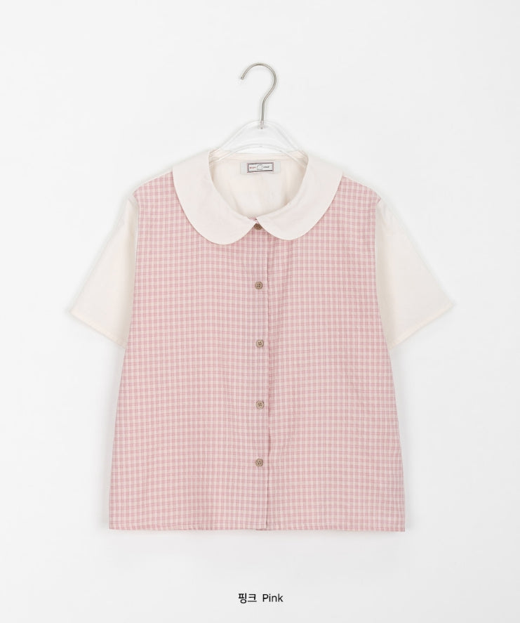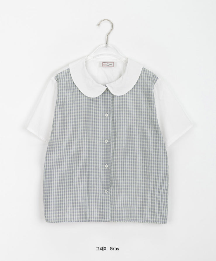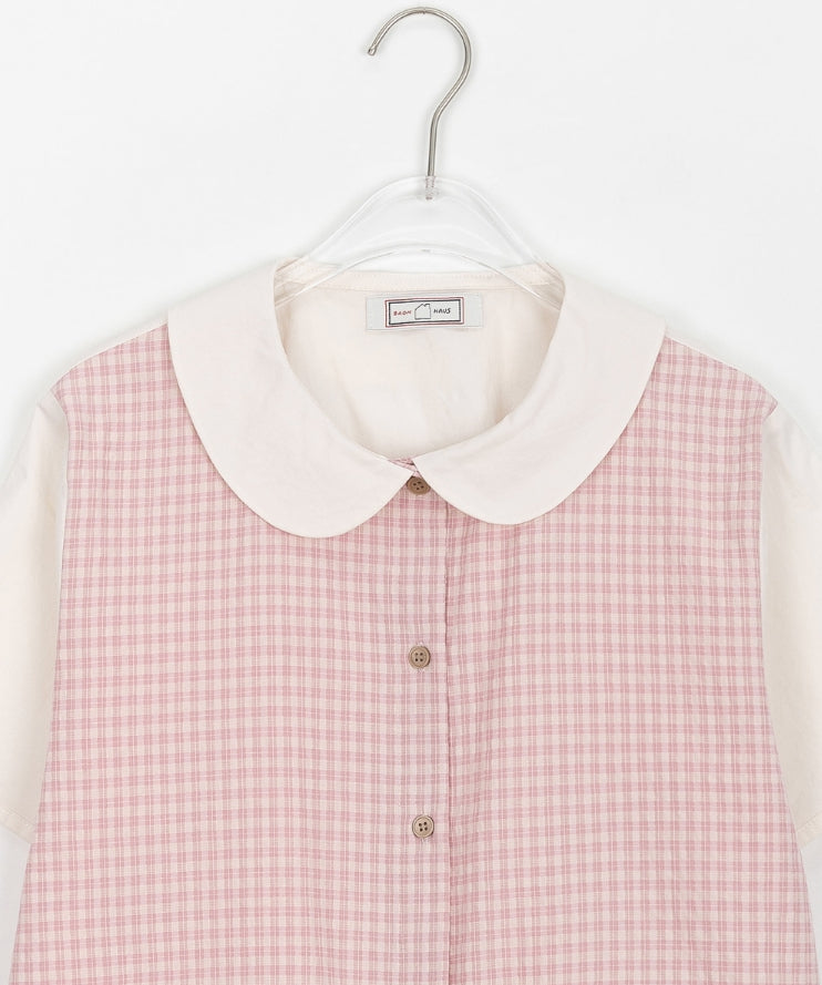 [BAONHAUS] Peurua Check Color Matching Short Sleeve Blouse