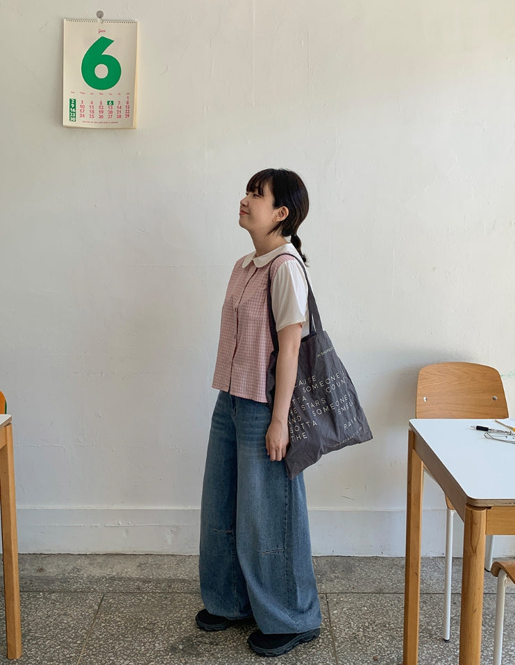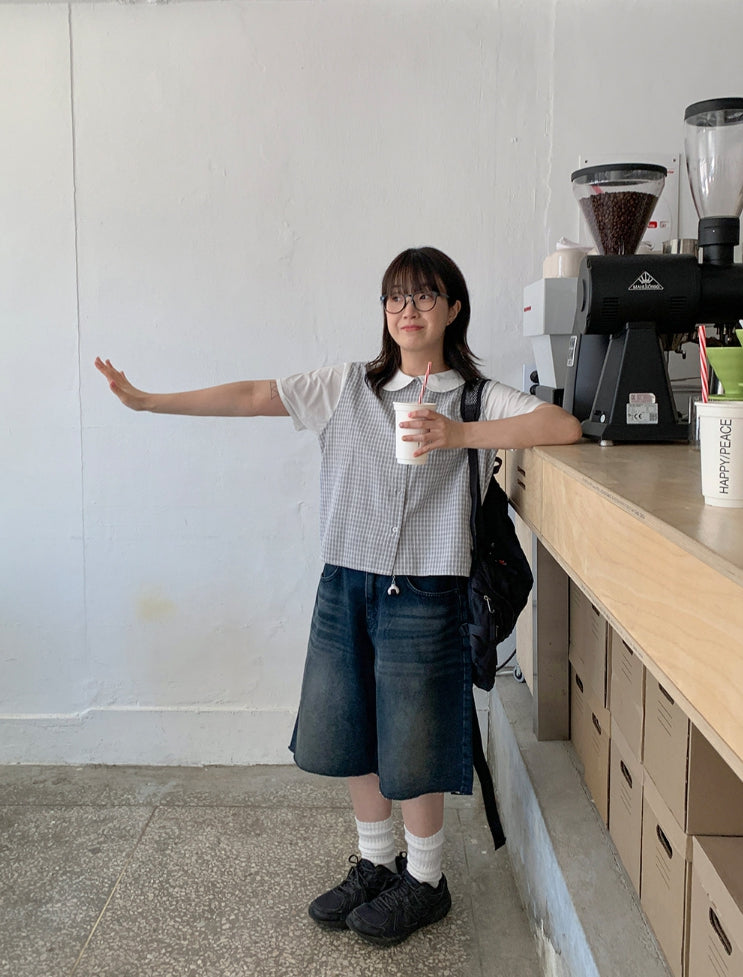 [BAONHAUS]フルアチェックカラー半袖ブラウス