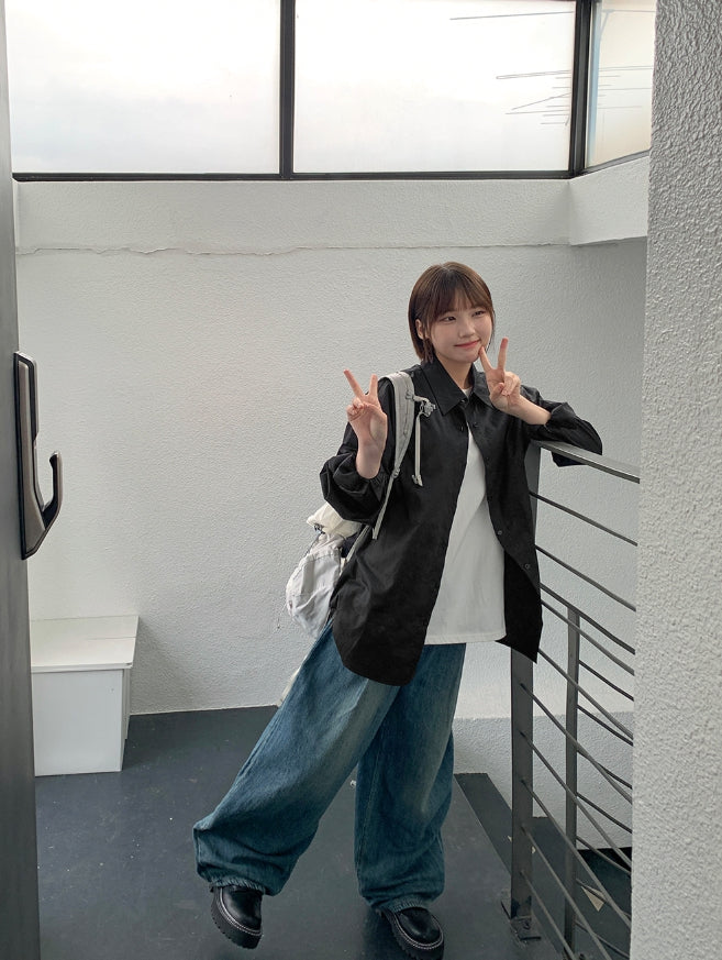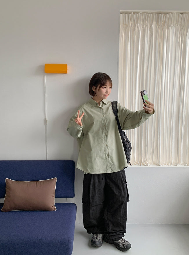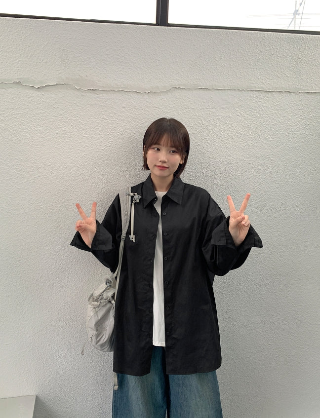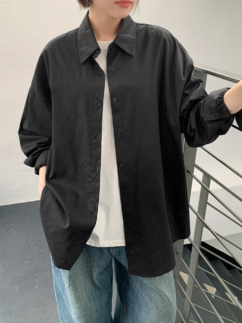 [BAONHAUS] Tenin Cotton Boxy Over Plain Shirt