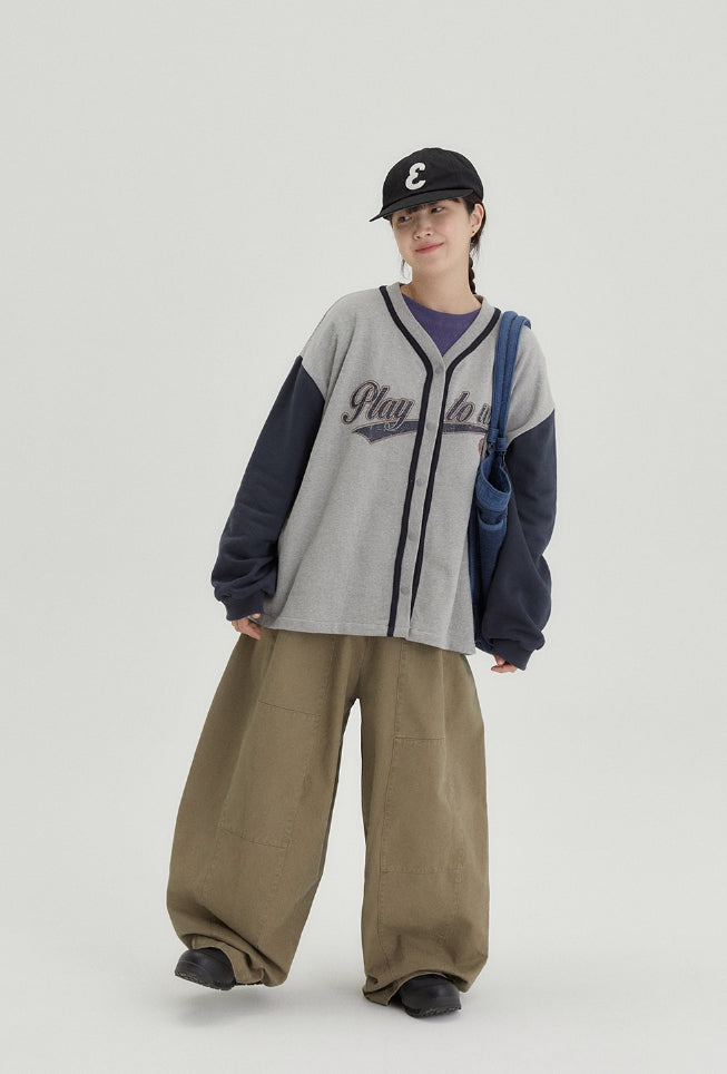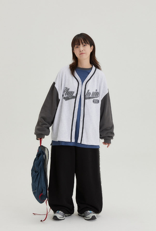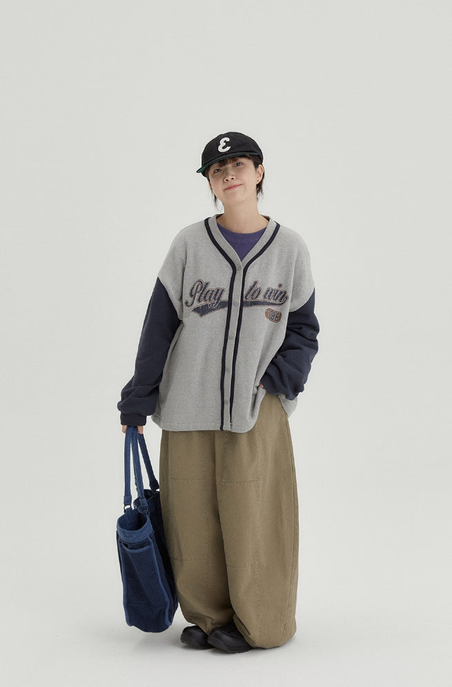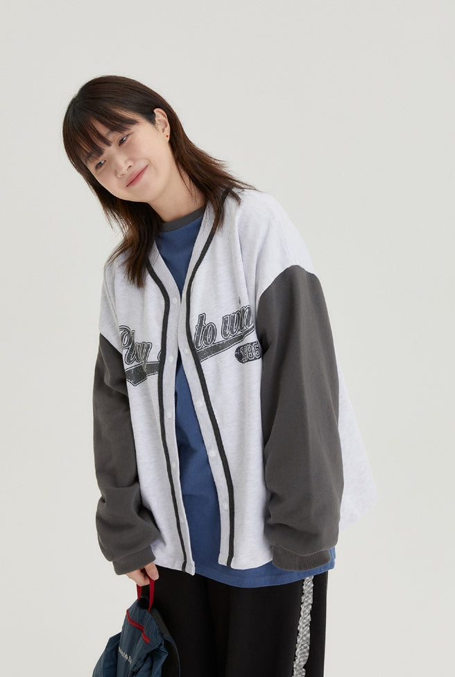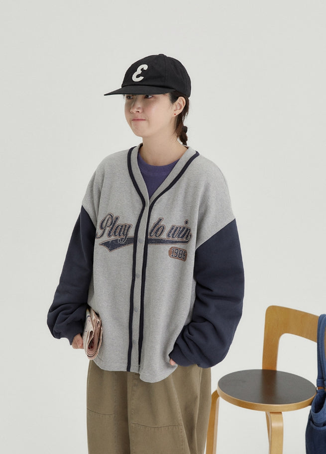 [BAONHAUS] Tenny lettering cotton color matching cardigan