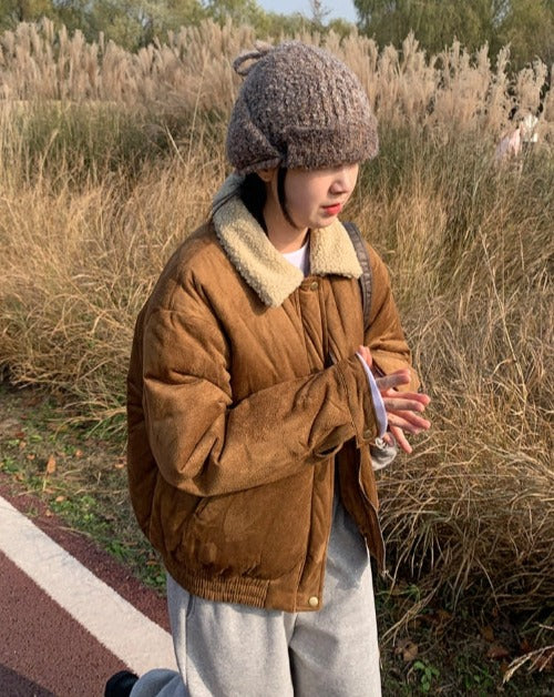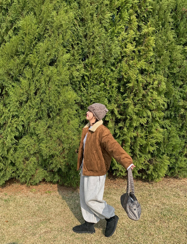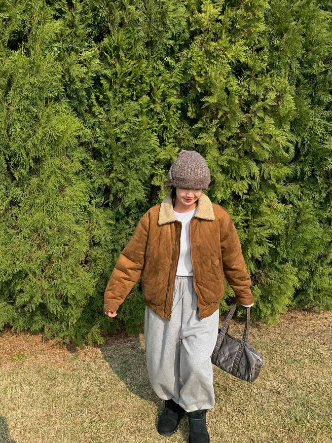[BAONHAUS] Tetenve Fleece Collar Suede Quilted Jumper