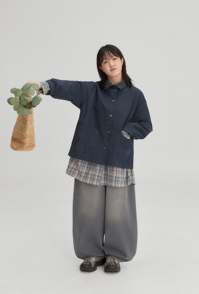 [BAONHAUS] Vintage Check Pocket Over Shirt