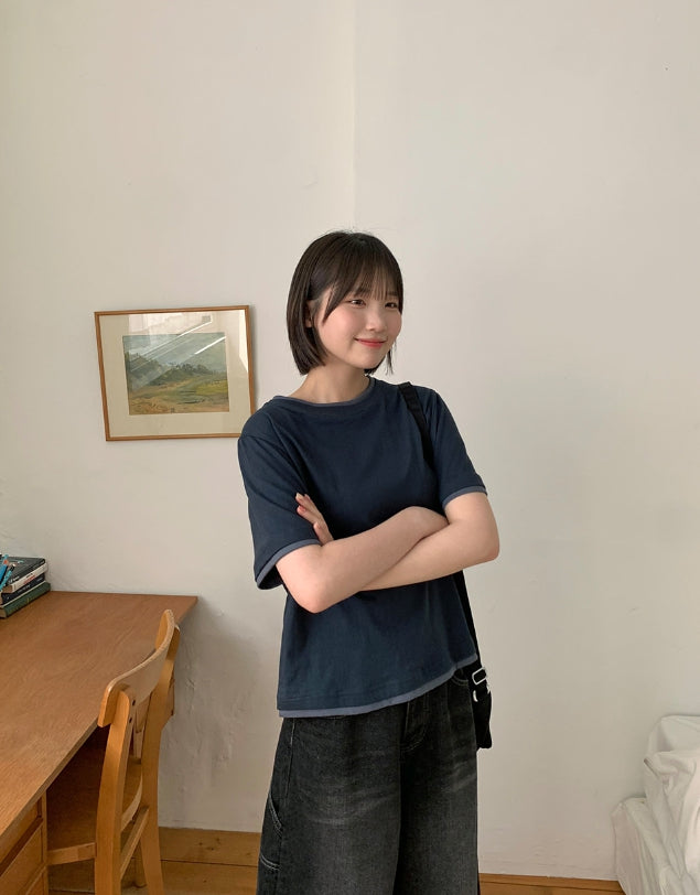 [BAONHAUS] Yanka Layered Color Matching Short Sleeve Tee