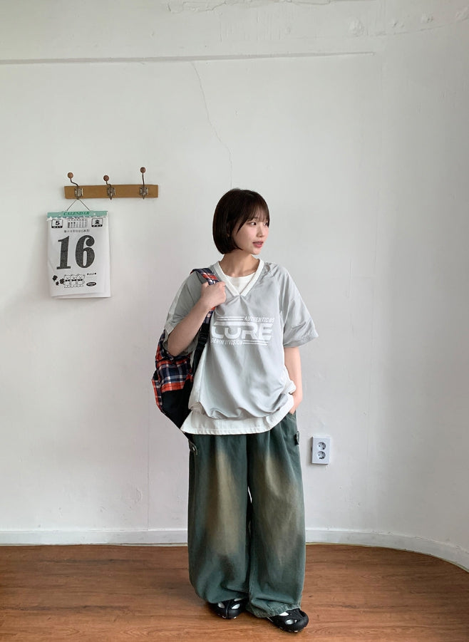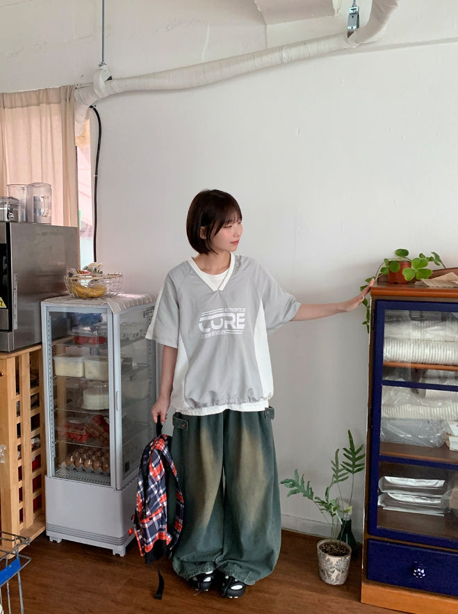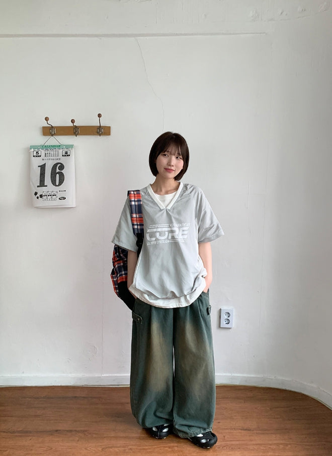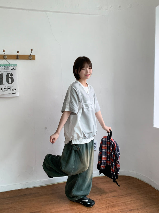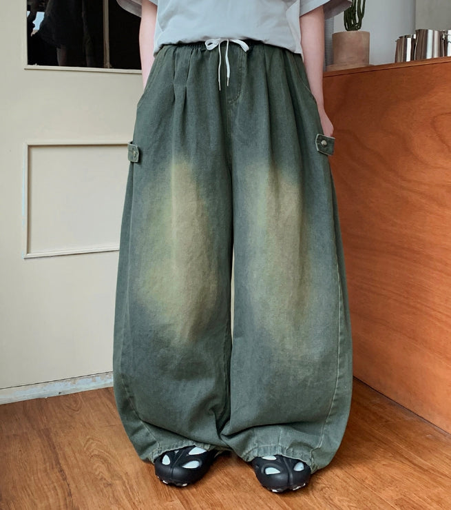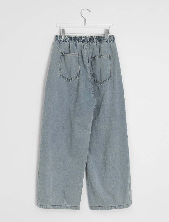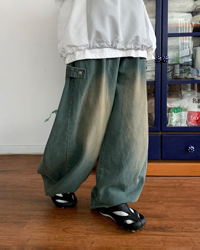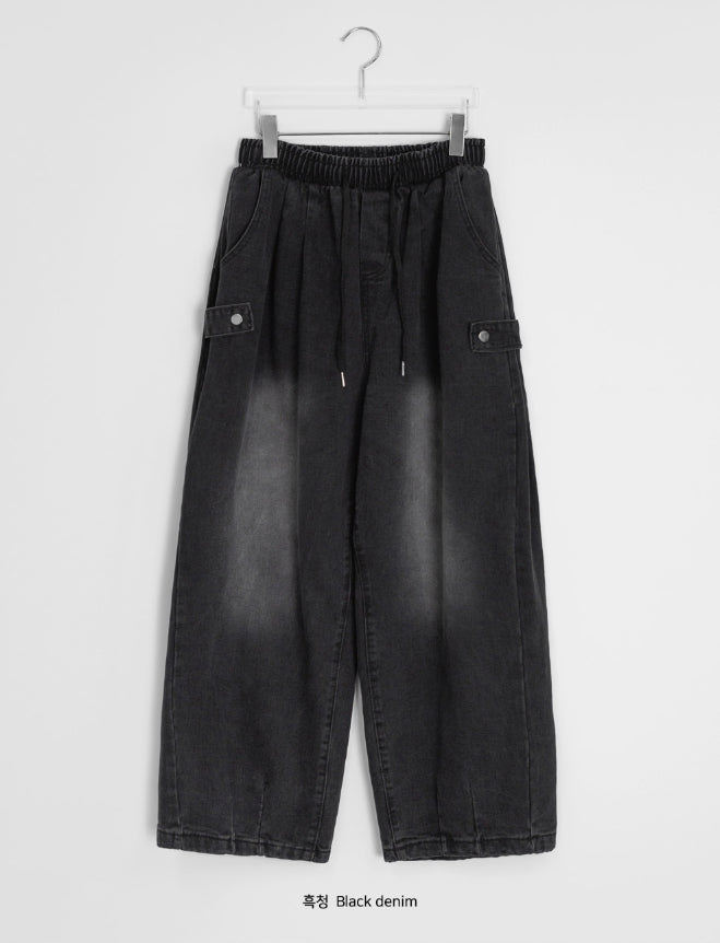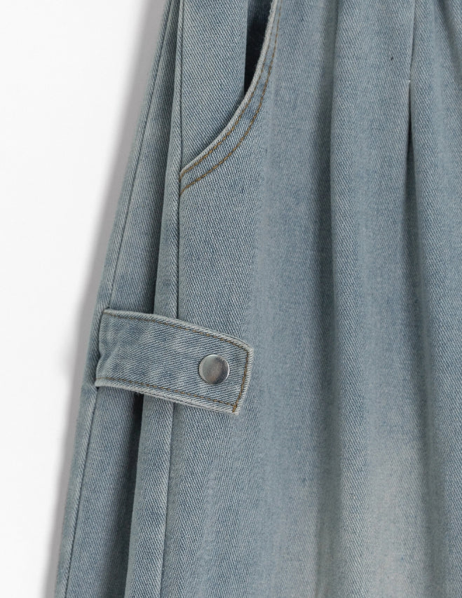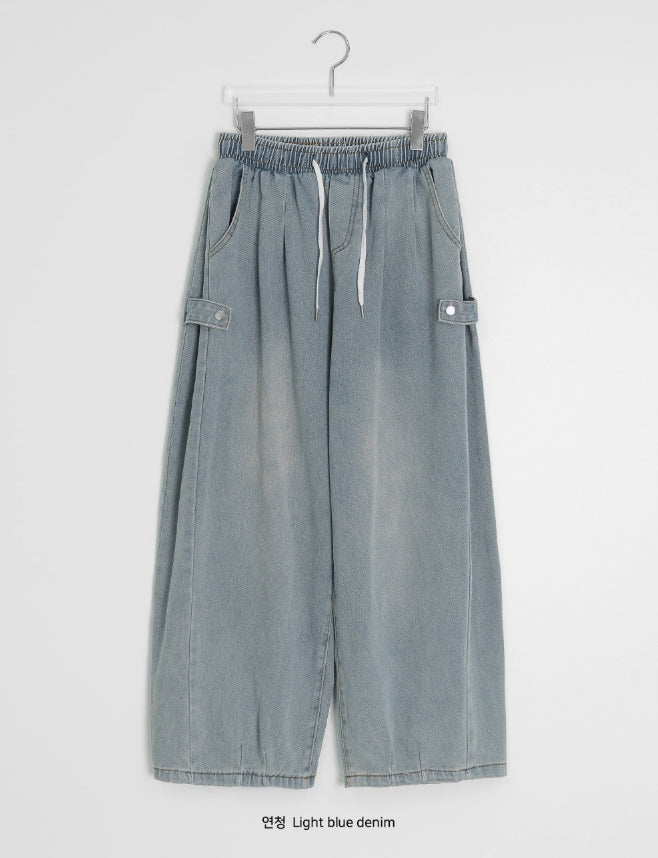 Beple Snap Button Banding Denim Balloon Wide Pants