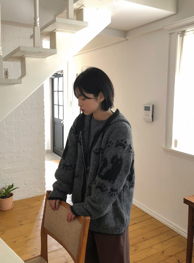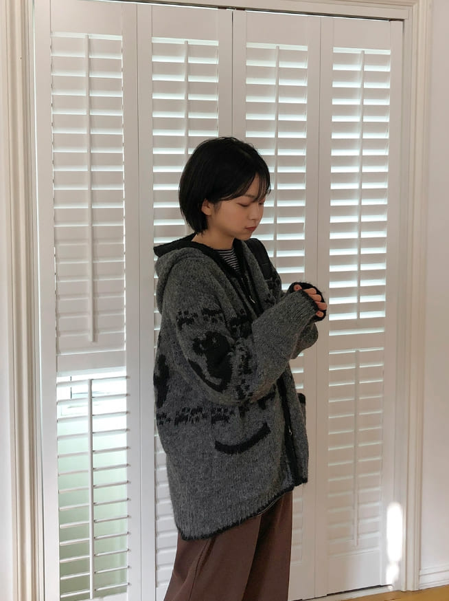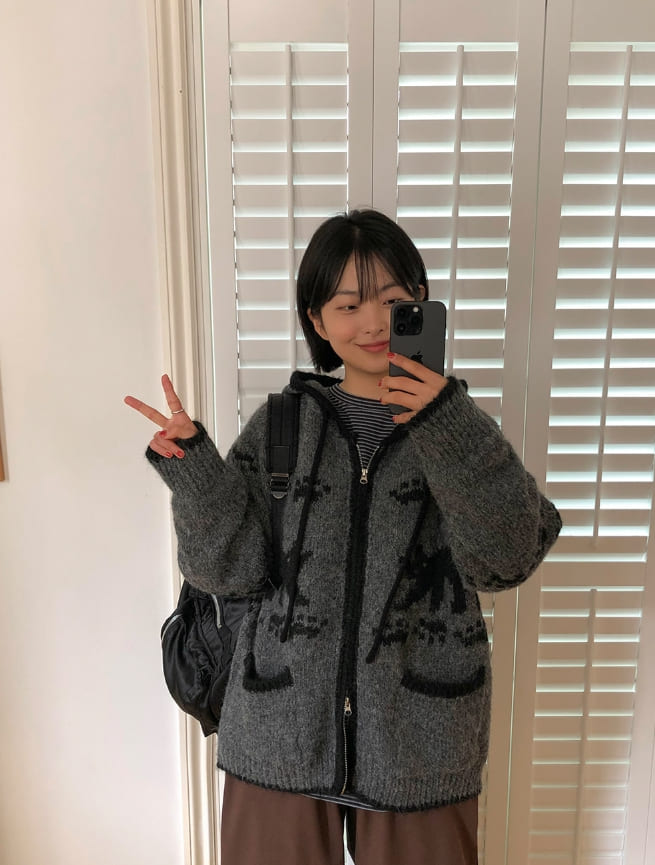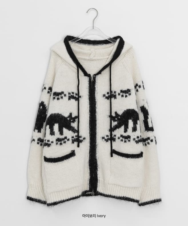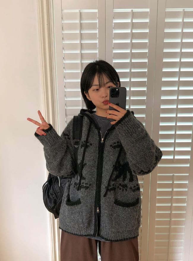 Bilforo Nordic Hood Wool Knit Zip-Up Cardigan