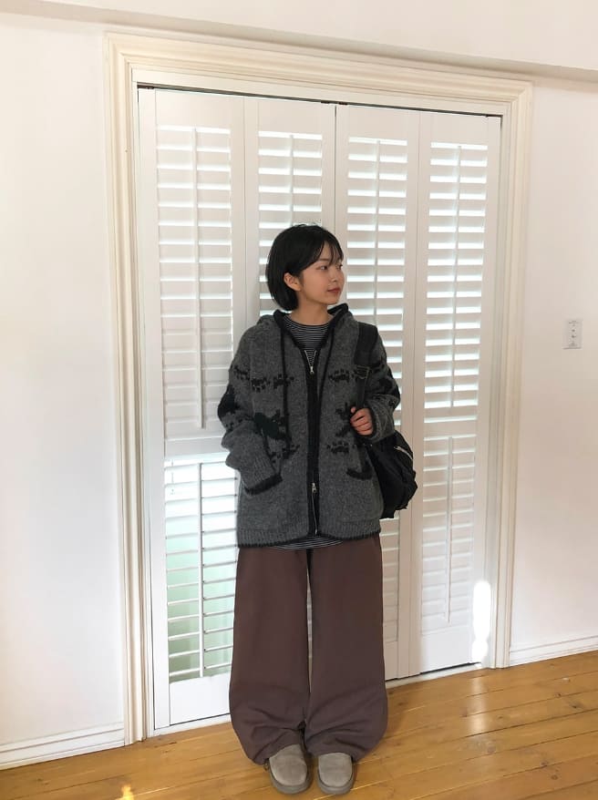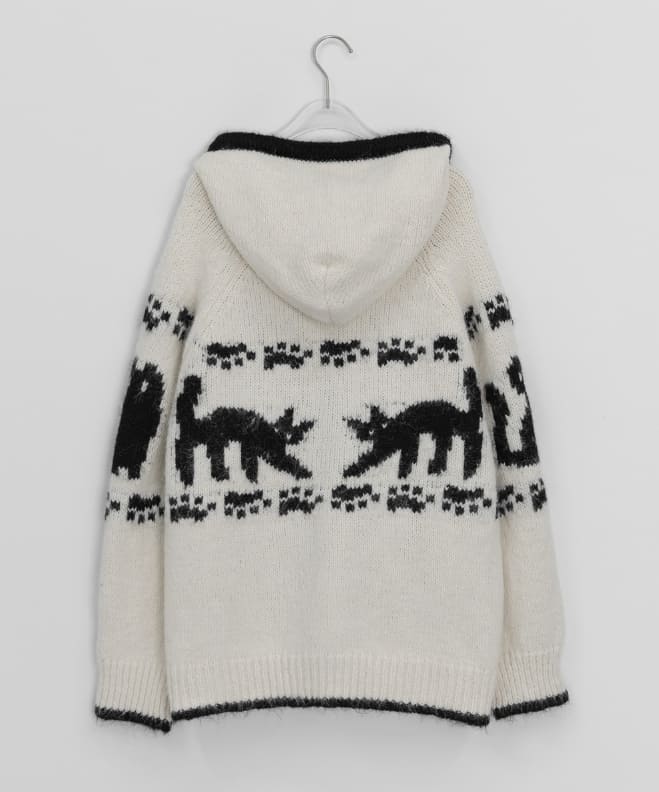 ビルフォノルディックフードウールニットジップアップカーディガン