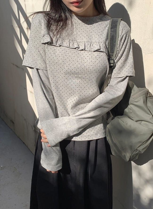 ビルケットドットフリルレイヤード長袖Tシャツ