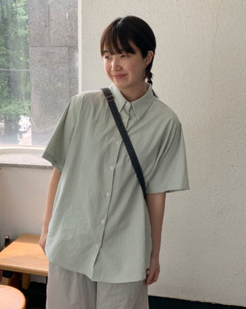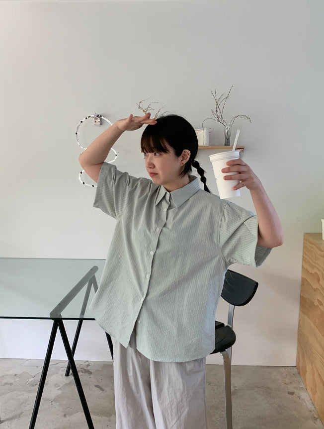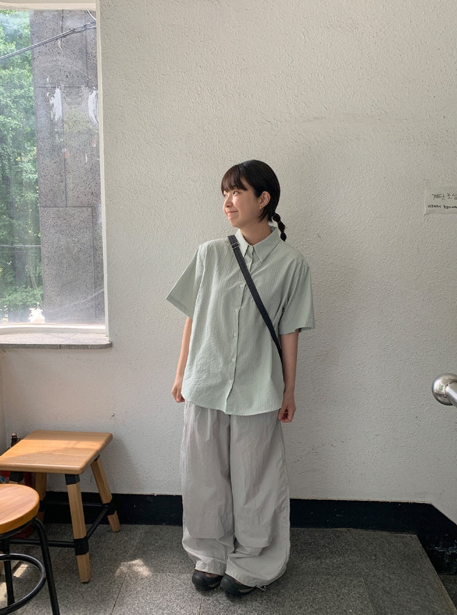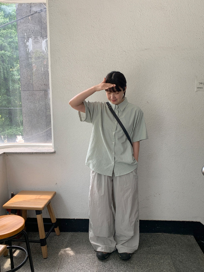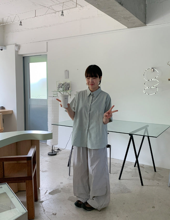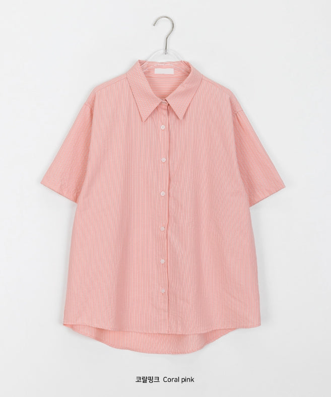 Byuko Color Stripe Seersucker Short Sleeve Shirt