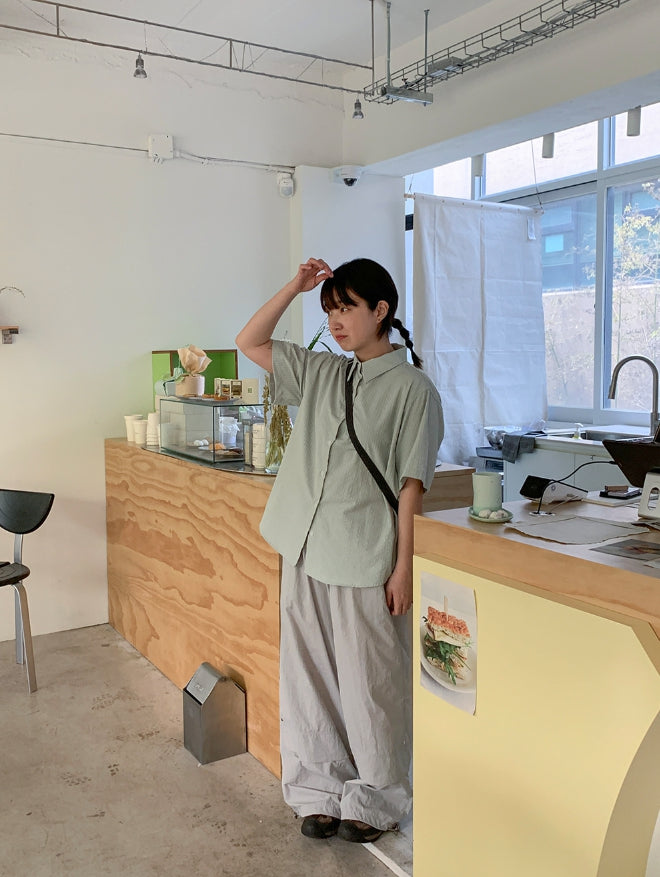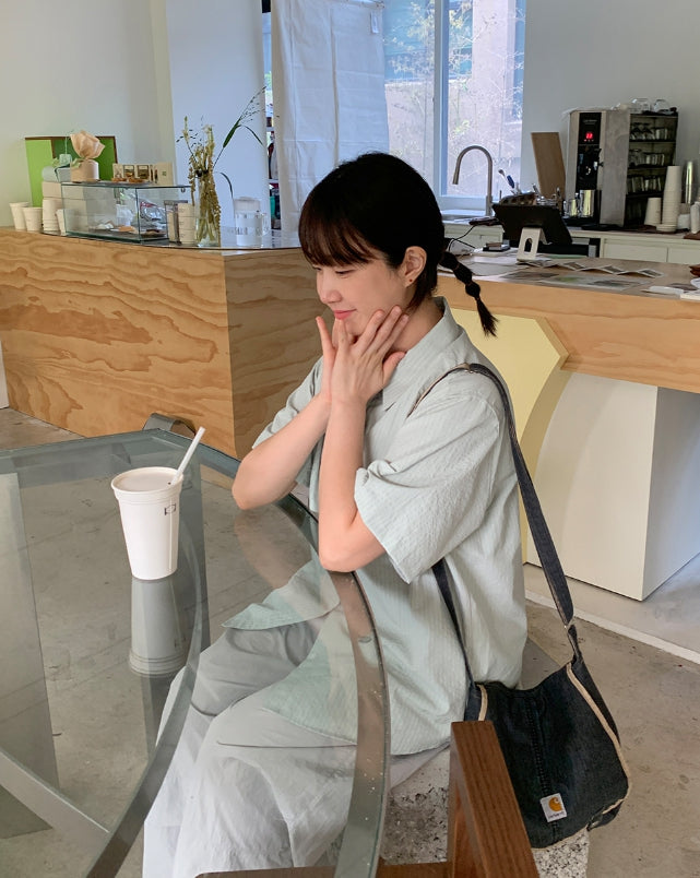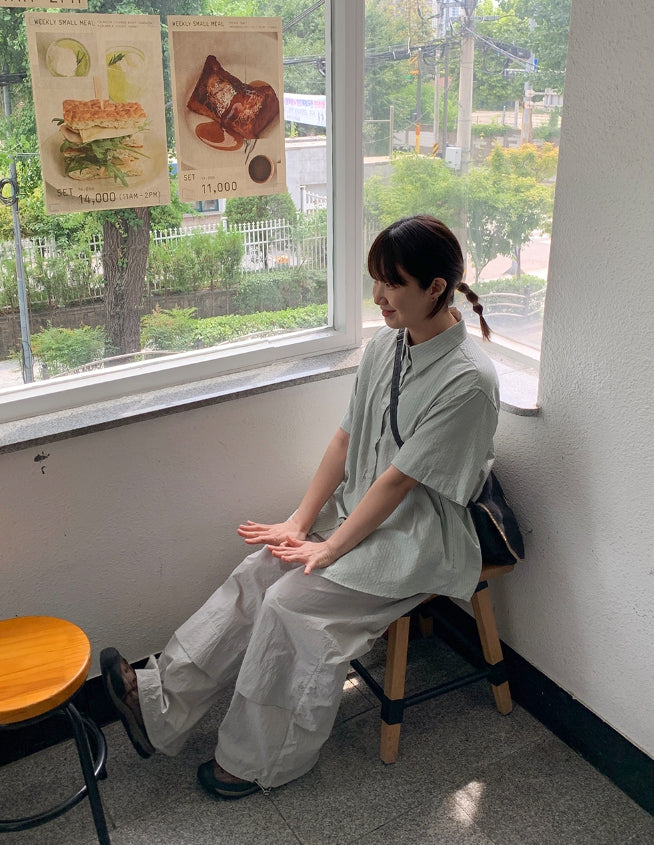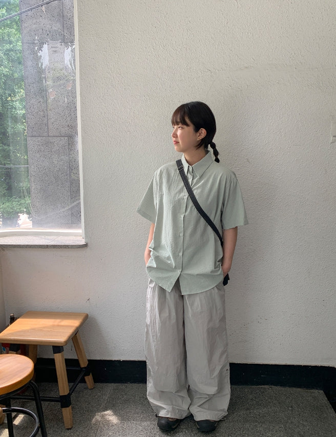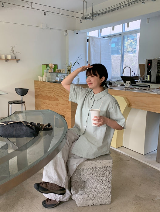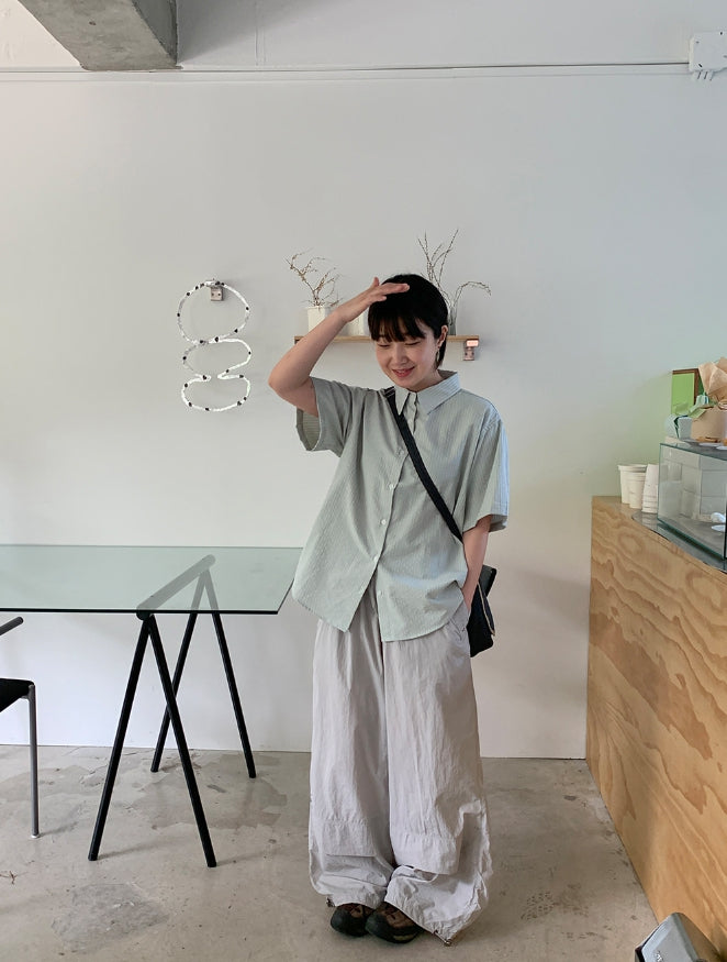 Byuko Color Stripe Seersucker Short Sleeve Shirt
