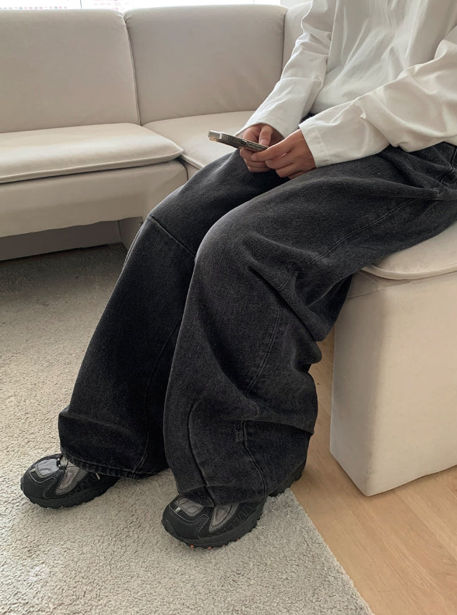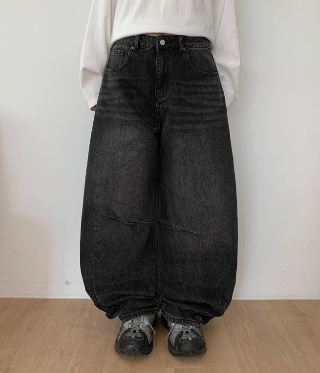 カルトンウォッシュ加工デニムバルーンワイドパンツ