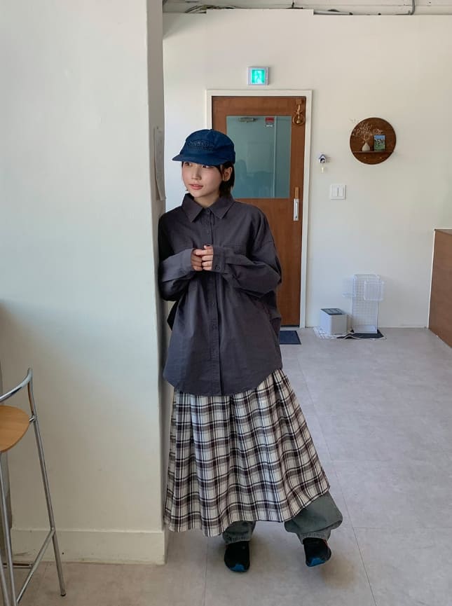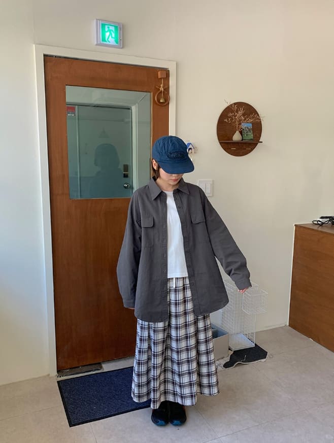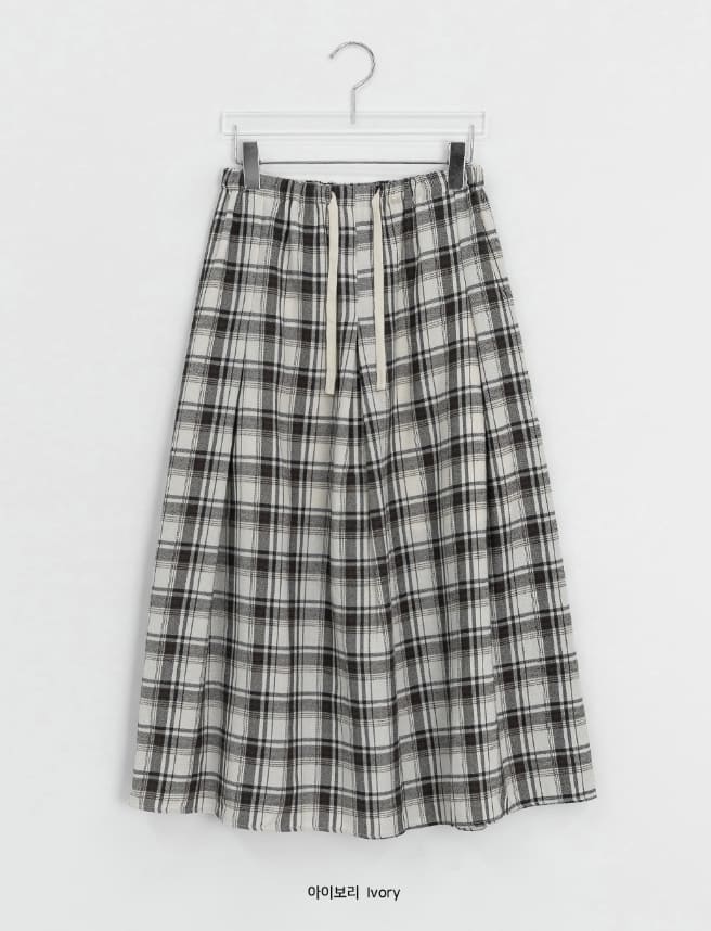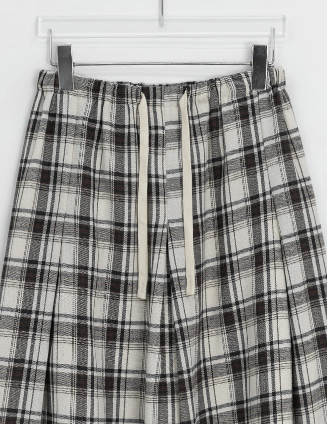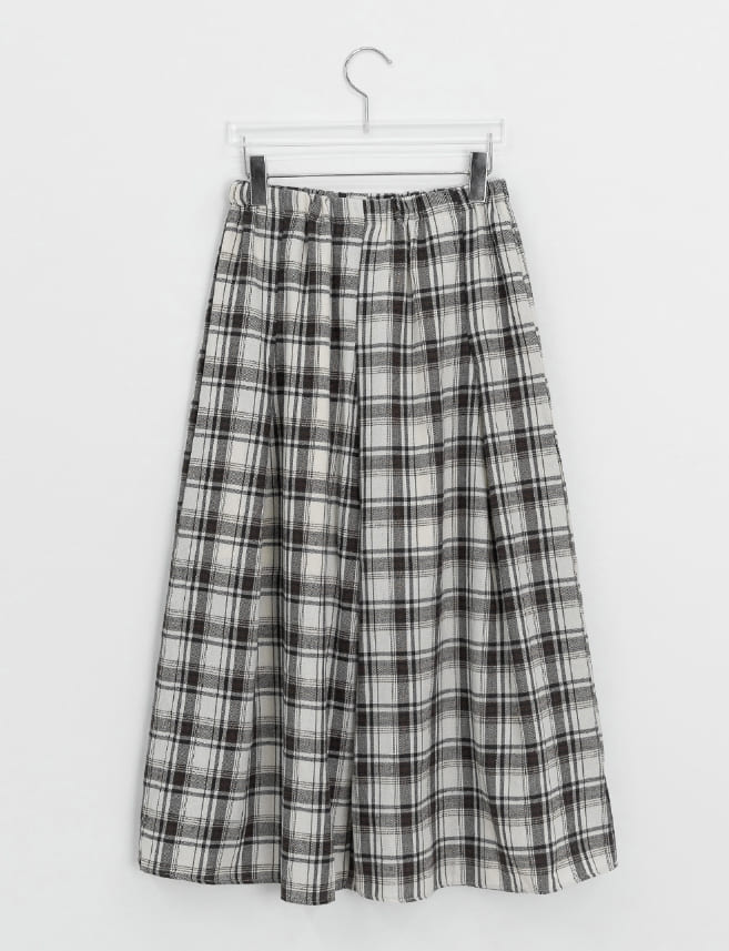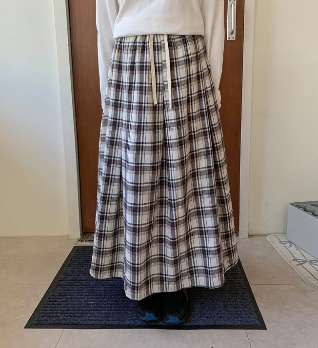セリーヌピンタックコットンチェックバンディングロングスカート
