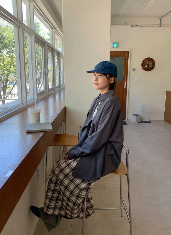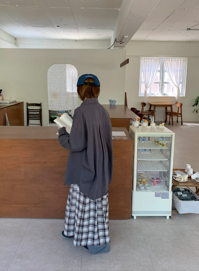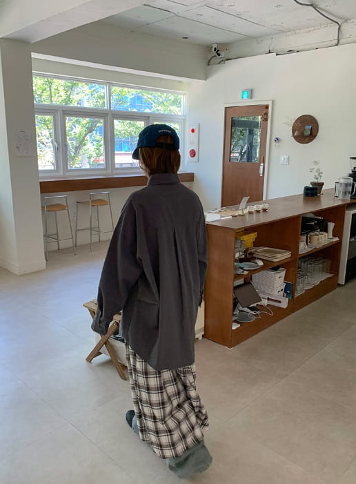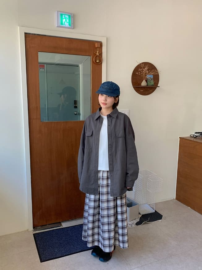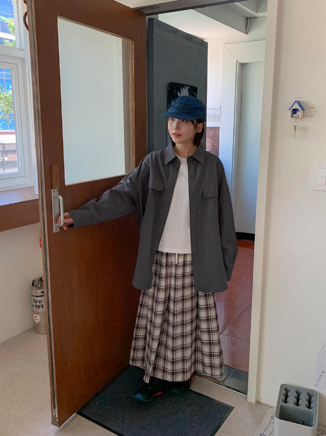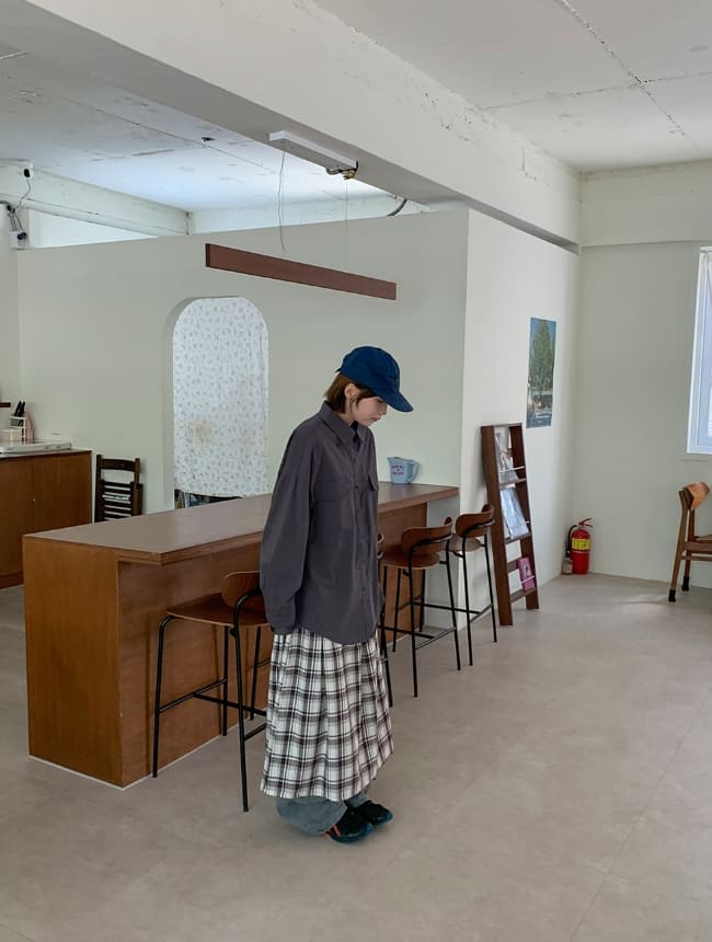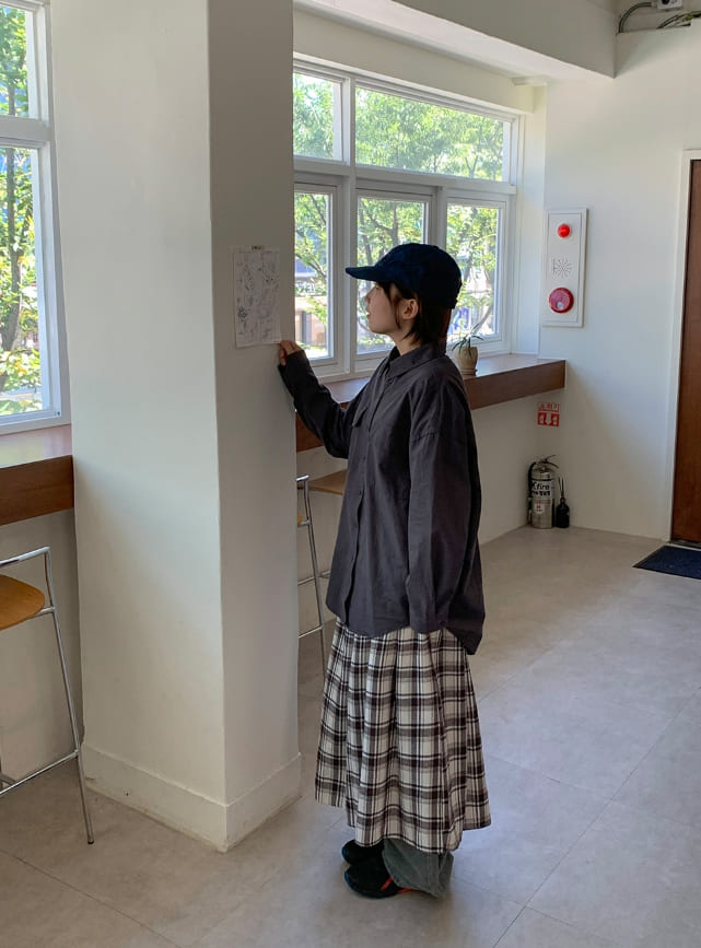 セリーヌピンタックコットンチェックバンディングロングスカート