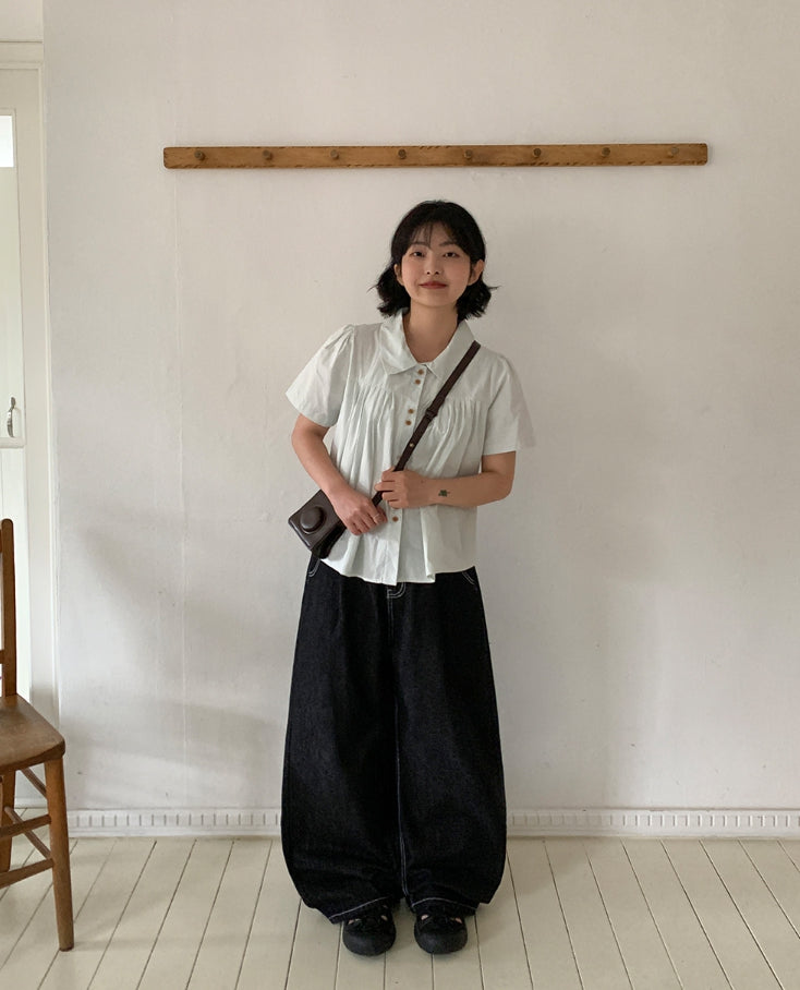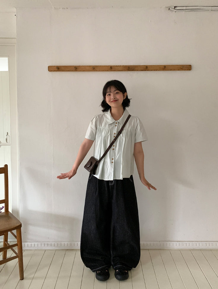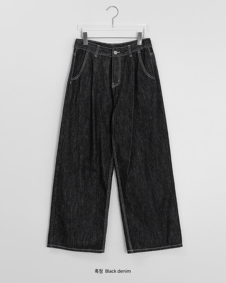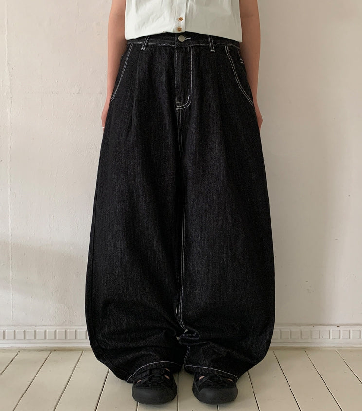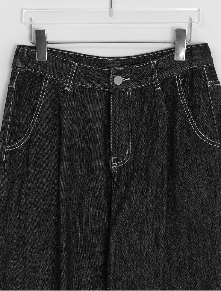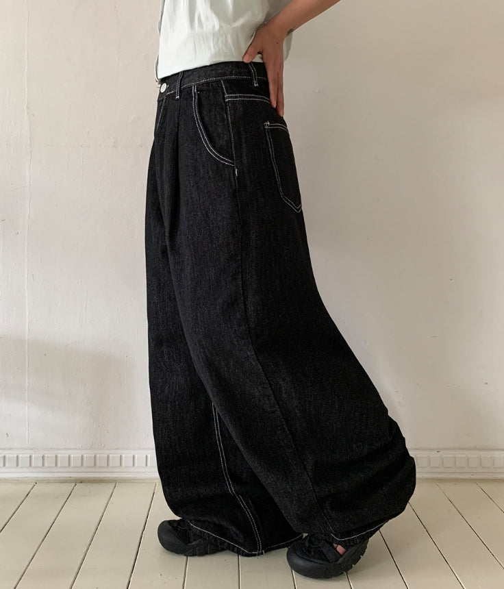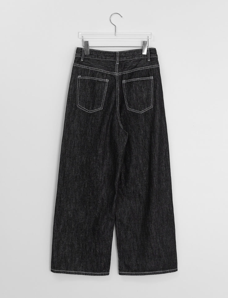 チャスサマーブラックブルーデニムワイドパンツ