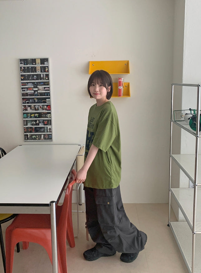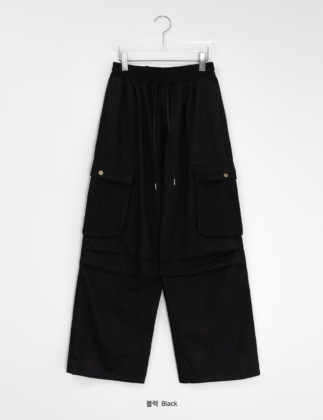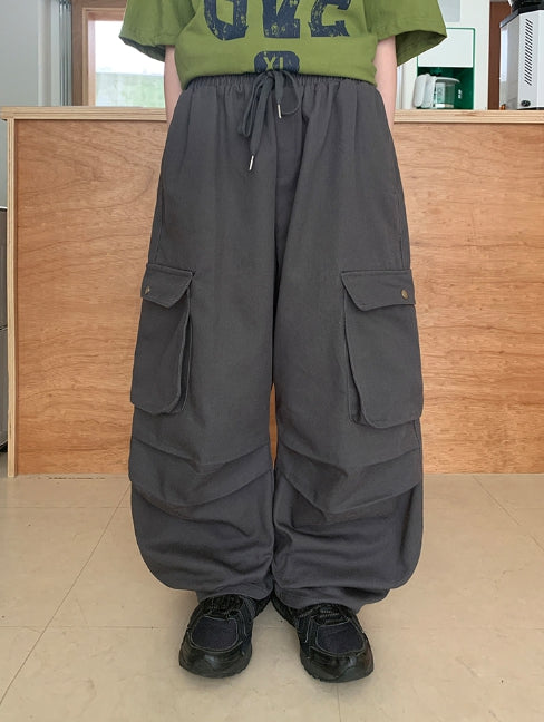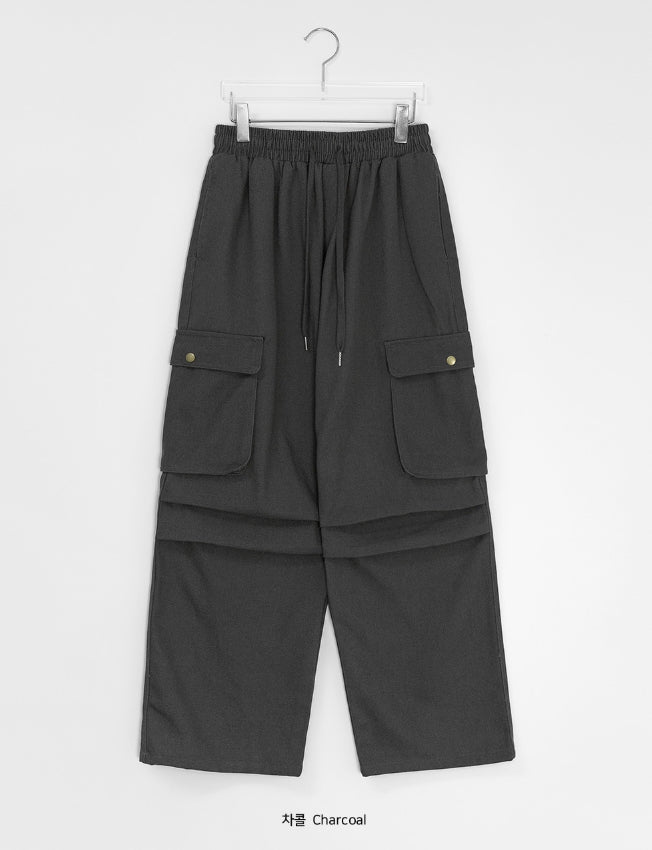 チェッカーパラシュートバンディングワイドカーゴパンツ