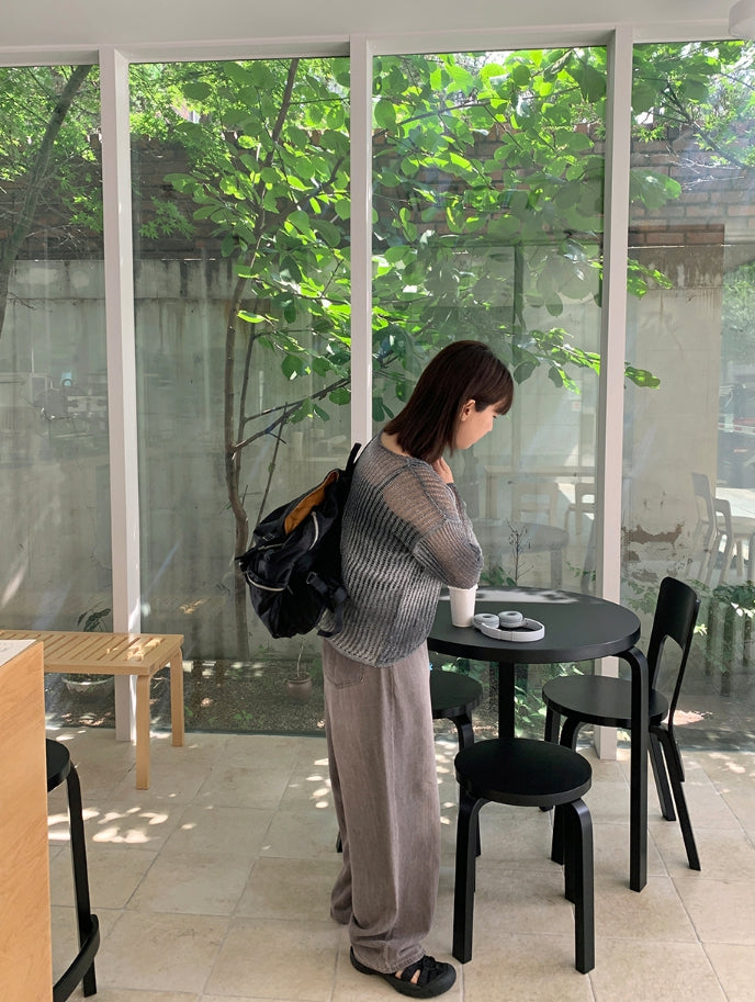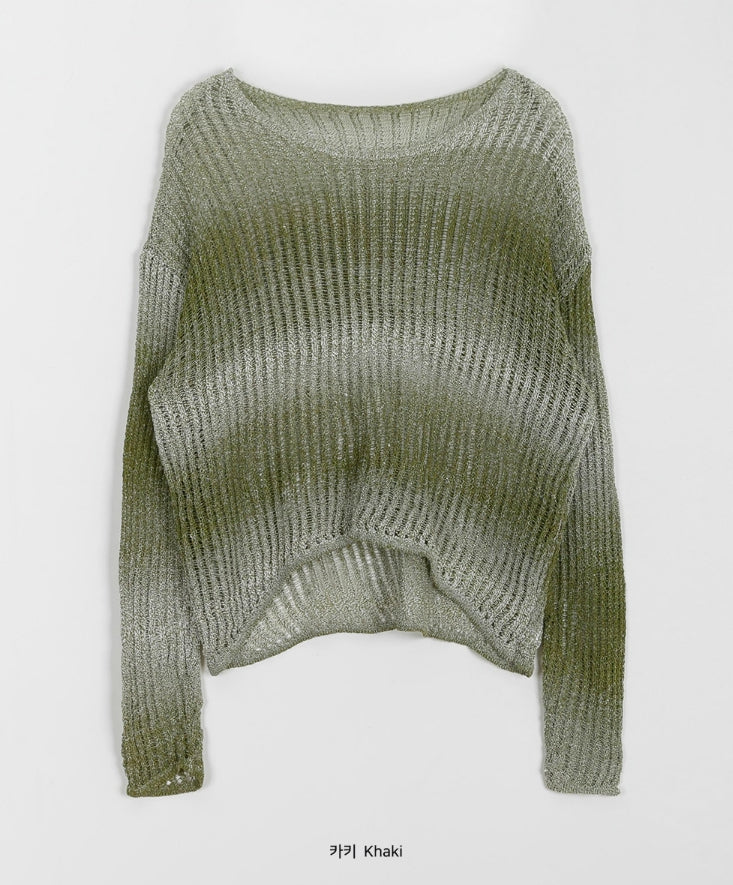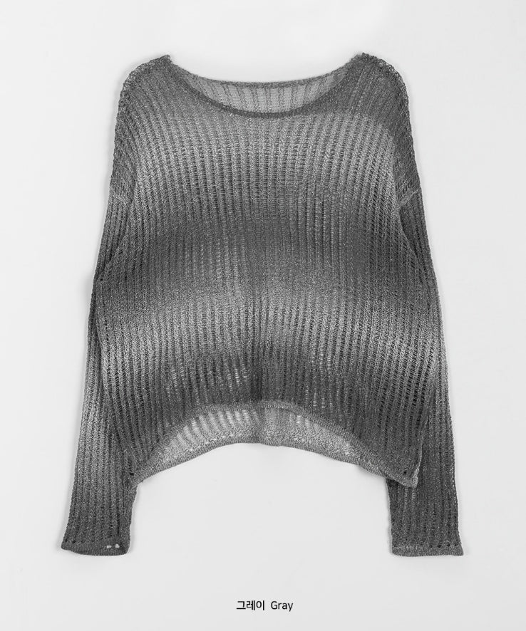 クメログラデーションシースルークロップニット