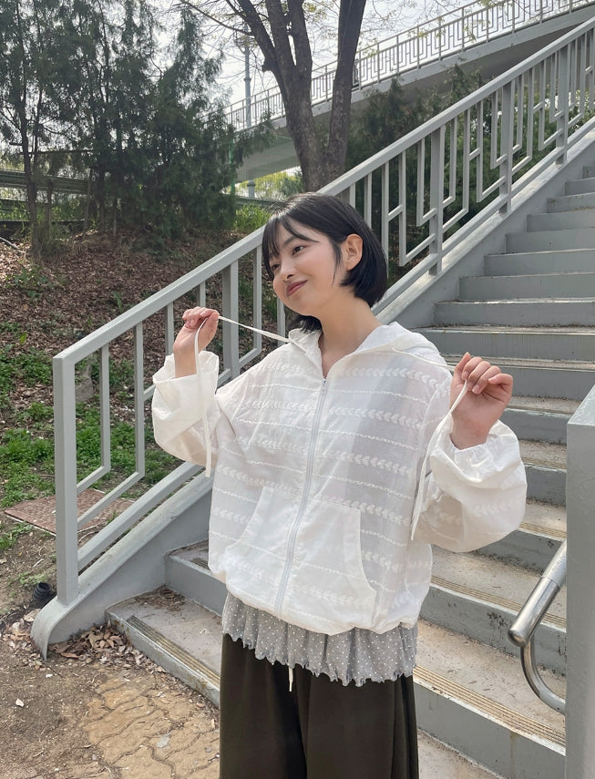 カクテブサマーフリルフードジップアップジャンパー
