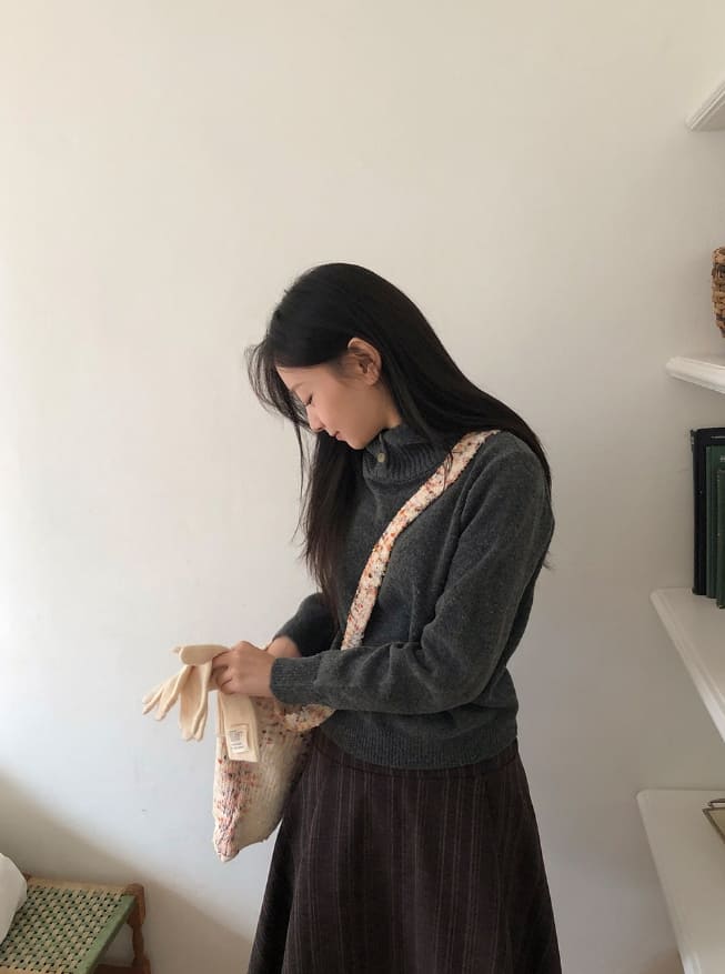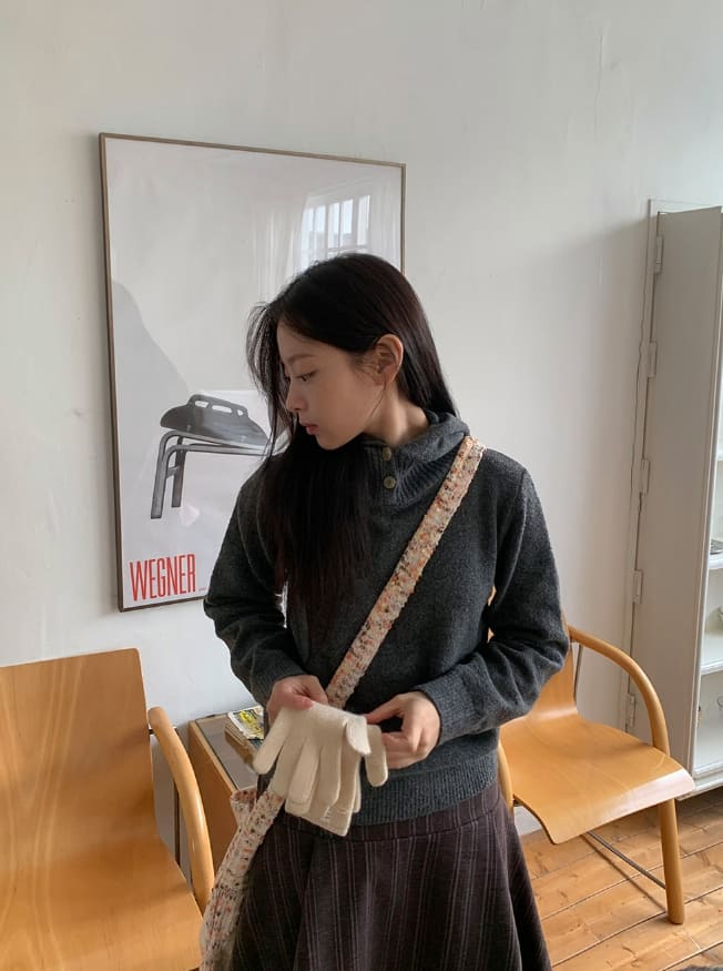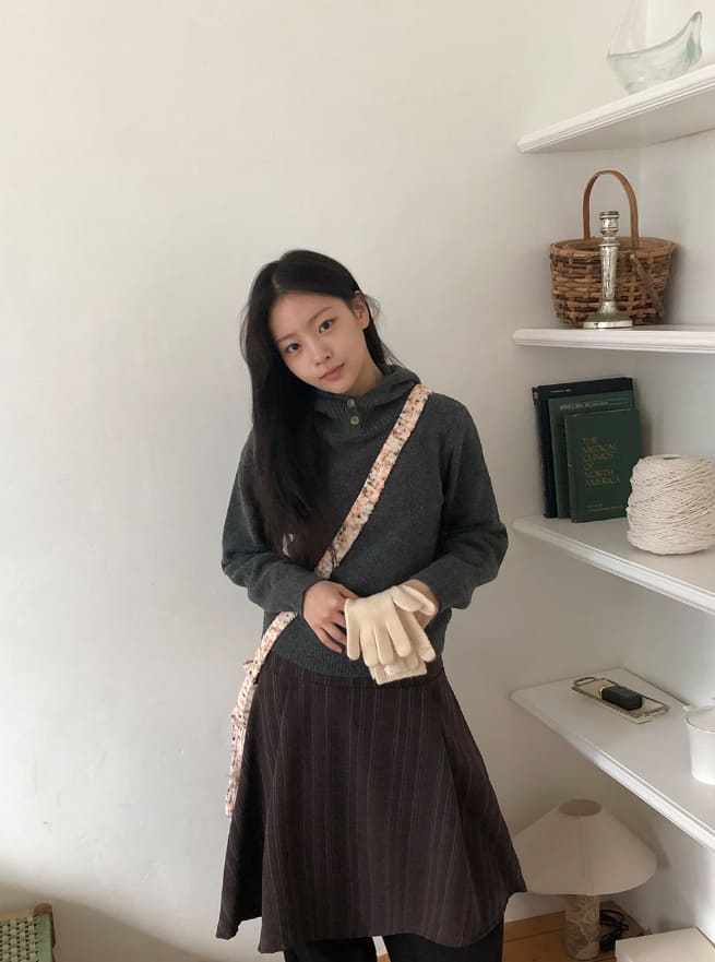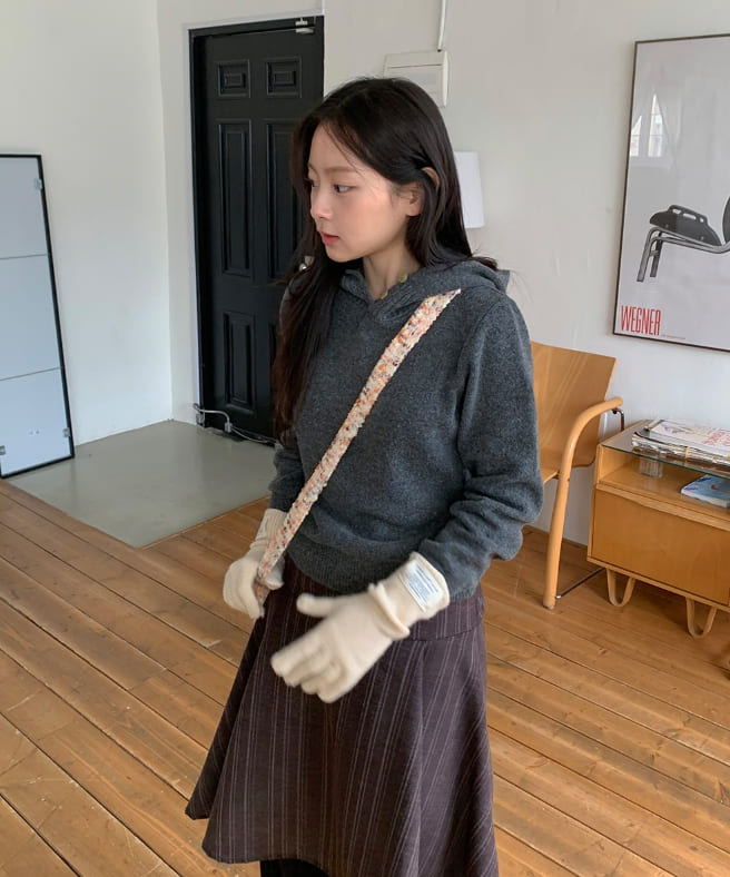 コルデンハイネックウールニットパーカー