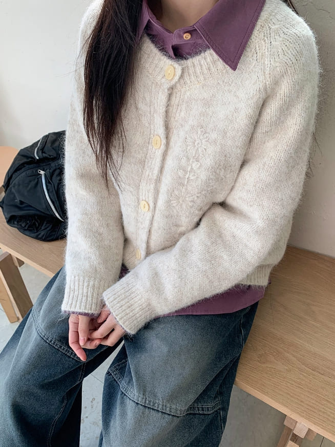 Cushit Flower Raglan Wool Knit Cardigan
