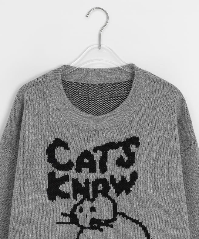 ディガンキャットプリントオーバー起毛ニット