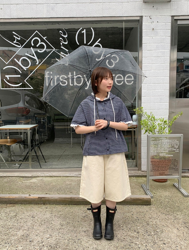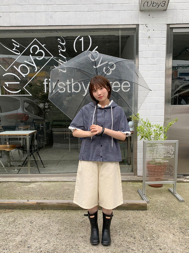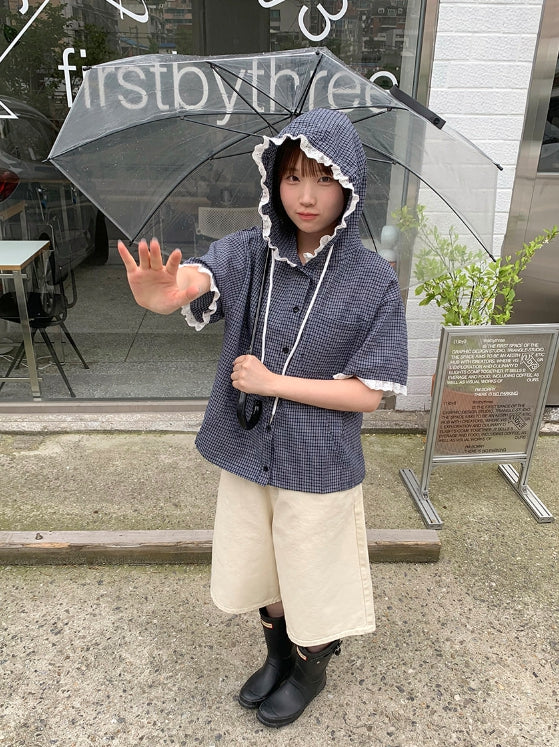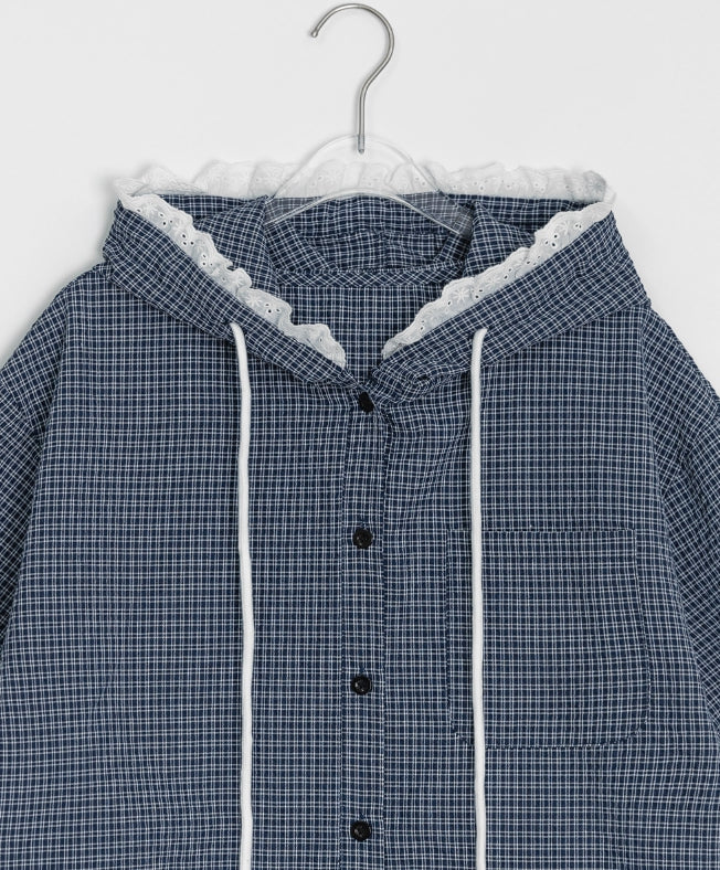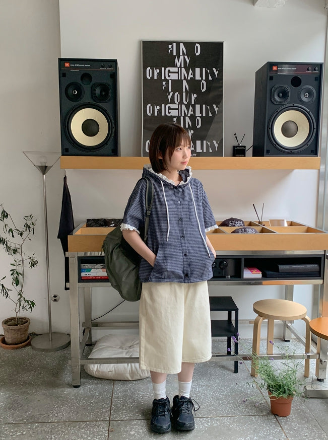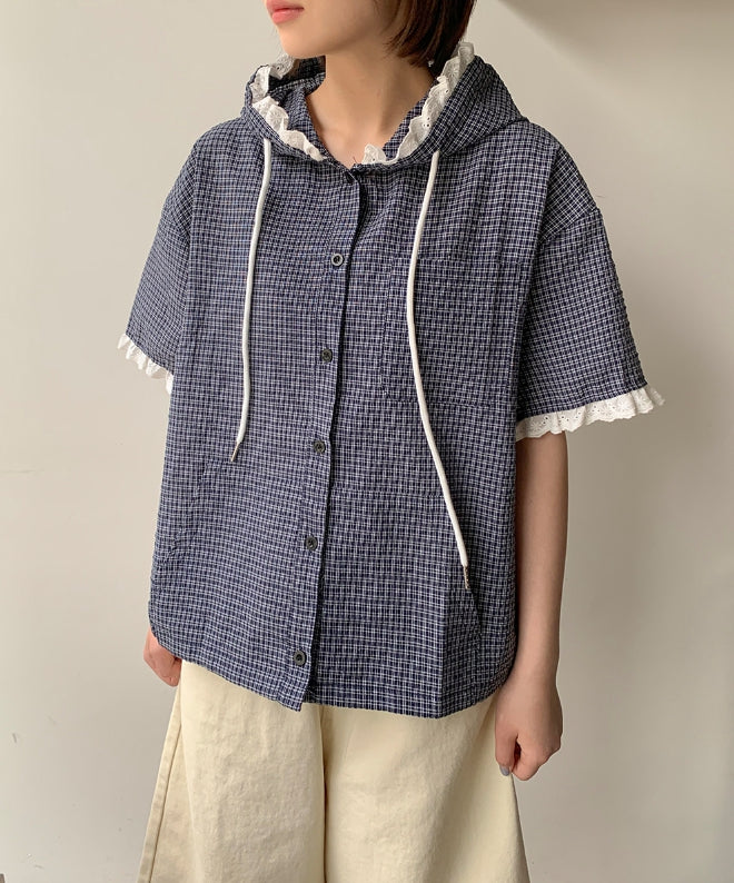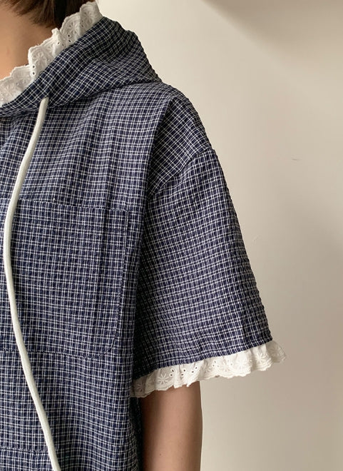 ディルティバーシアサッカーチェックフード半袖シャツ