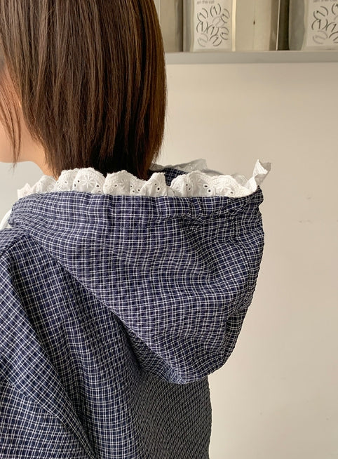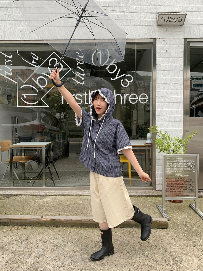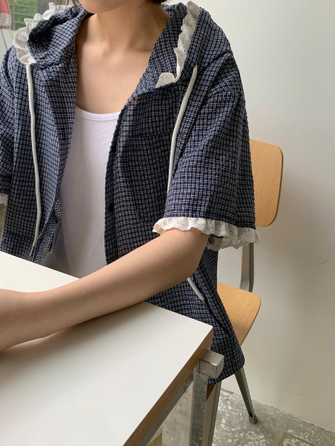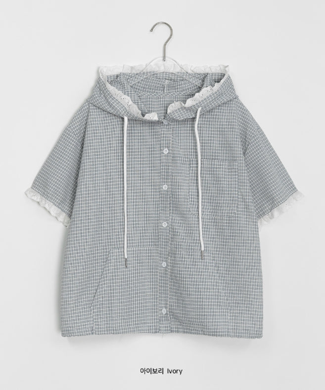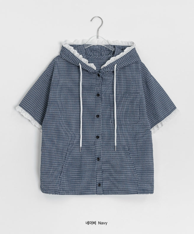 Diltiber Seersucker Check Hood Short Sleeve Shirt