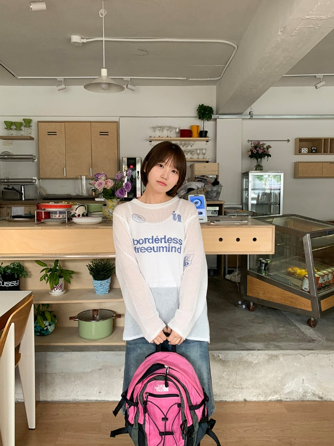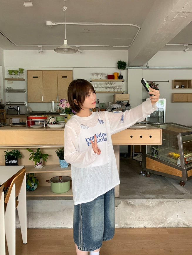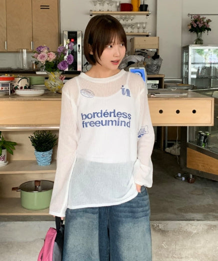 Dipeun Summer Printing Punching Long Sleeve Knit