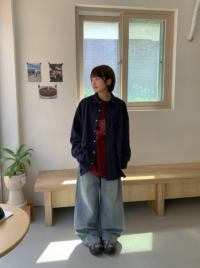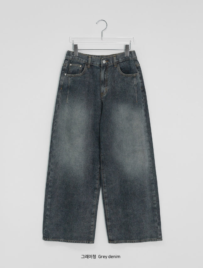 Dronghin Dart Washing Denim Wide Pants