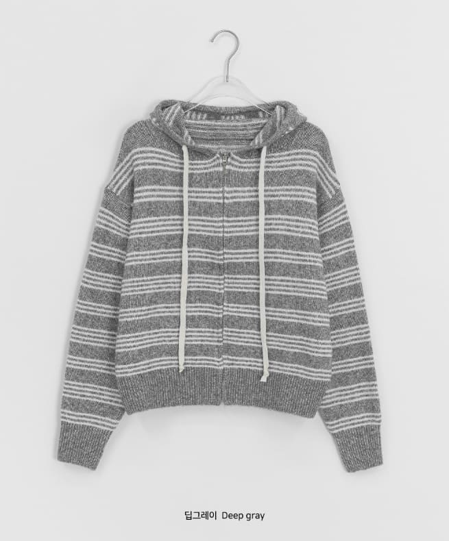 Feltenden Stripe Knit Hood Zip-Up Cardigan