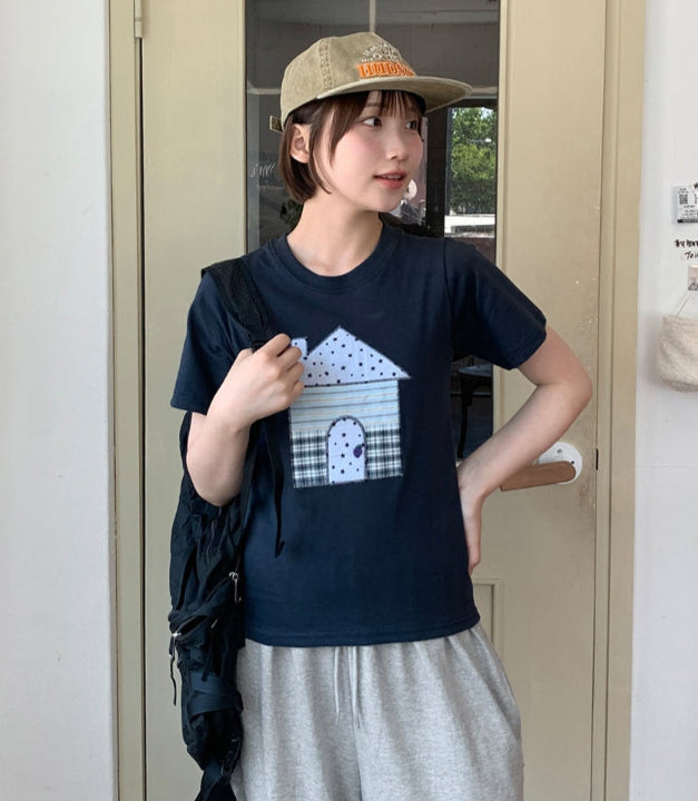 Giltbee Star Embroidered Crop Short Sleeve Tee