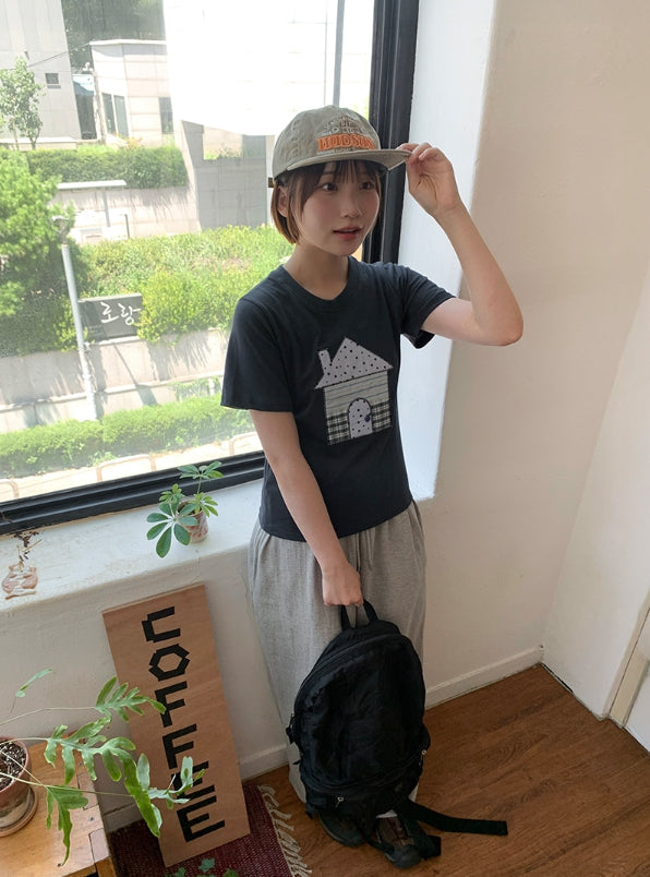 ギルトビスター刺繍クロップ半袖Tシャツ