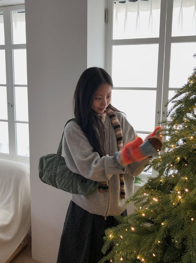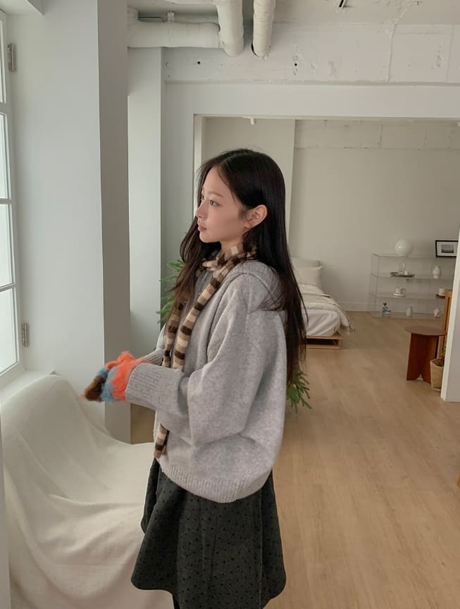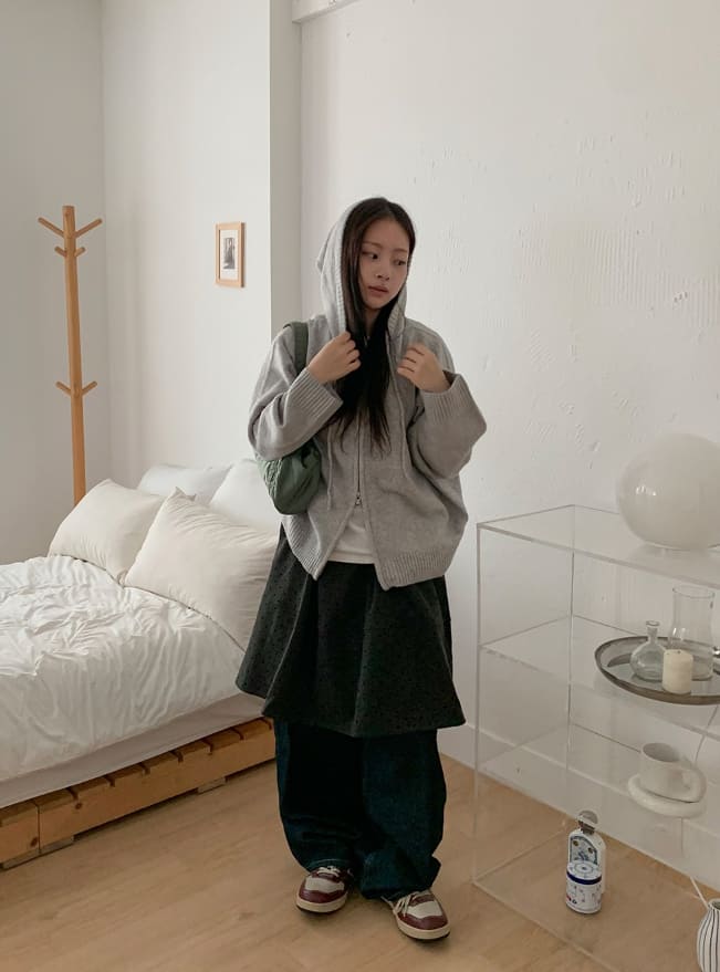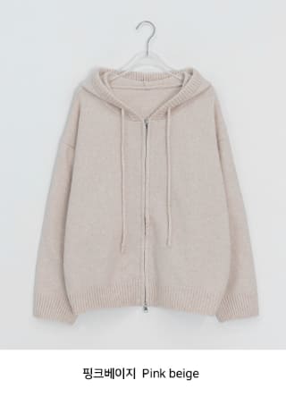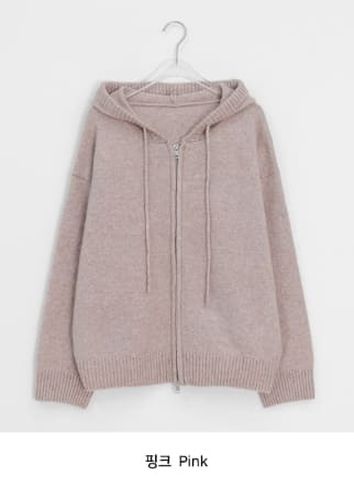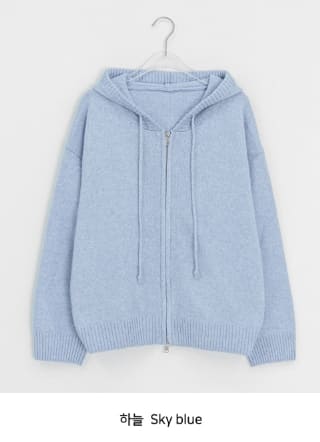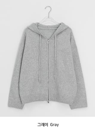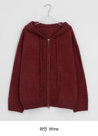 Giten Color Wool Hood Zip-Up Knit Cardigan