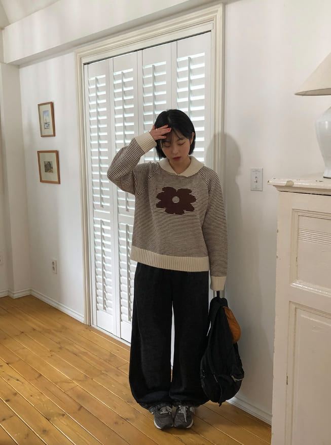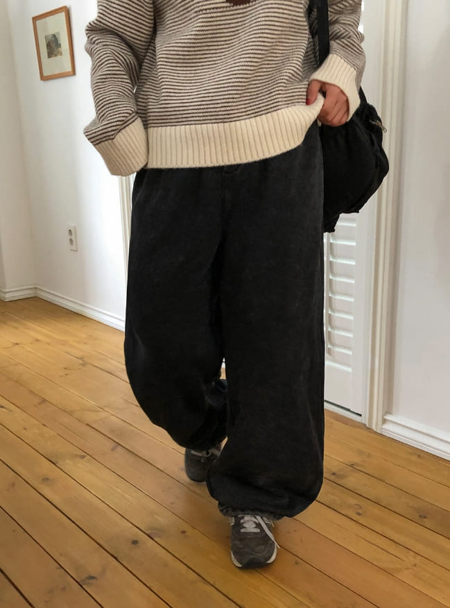ギュイソンピグメント裏起毛バンディングワイドパンツ